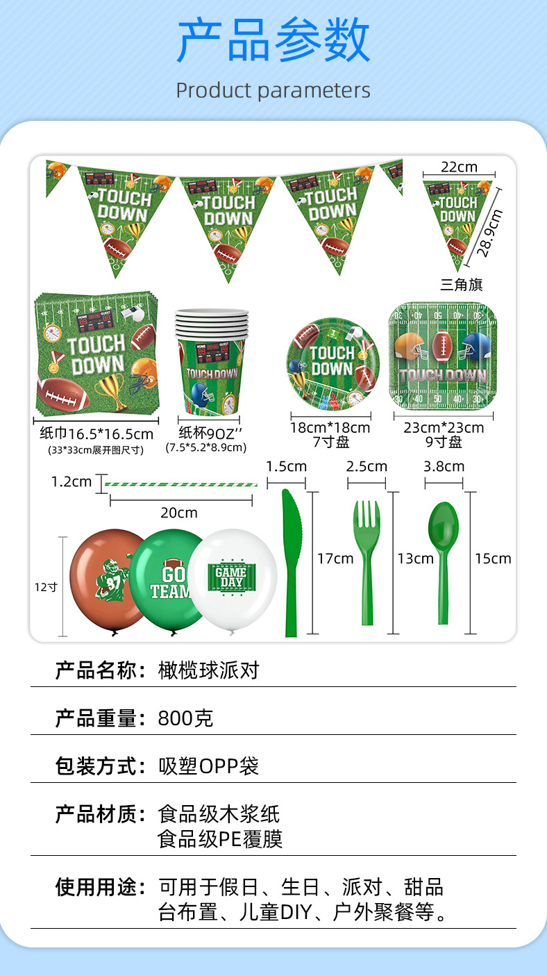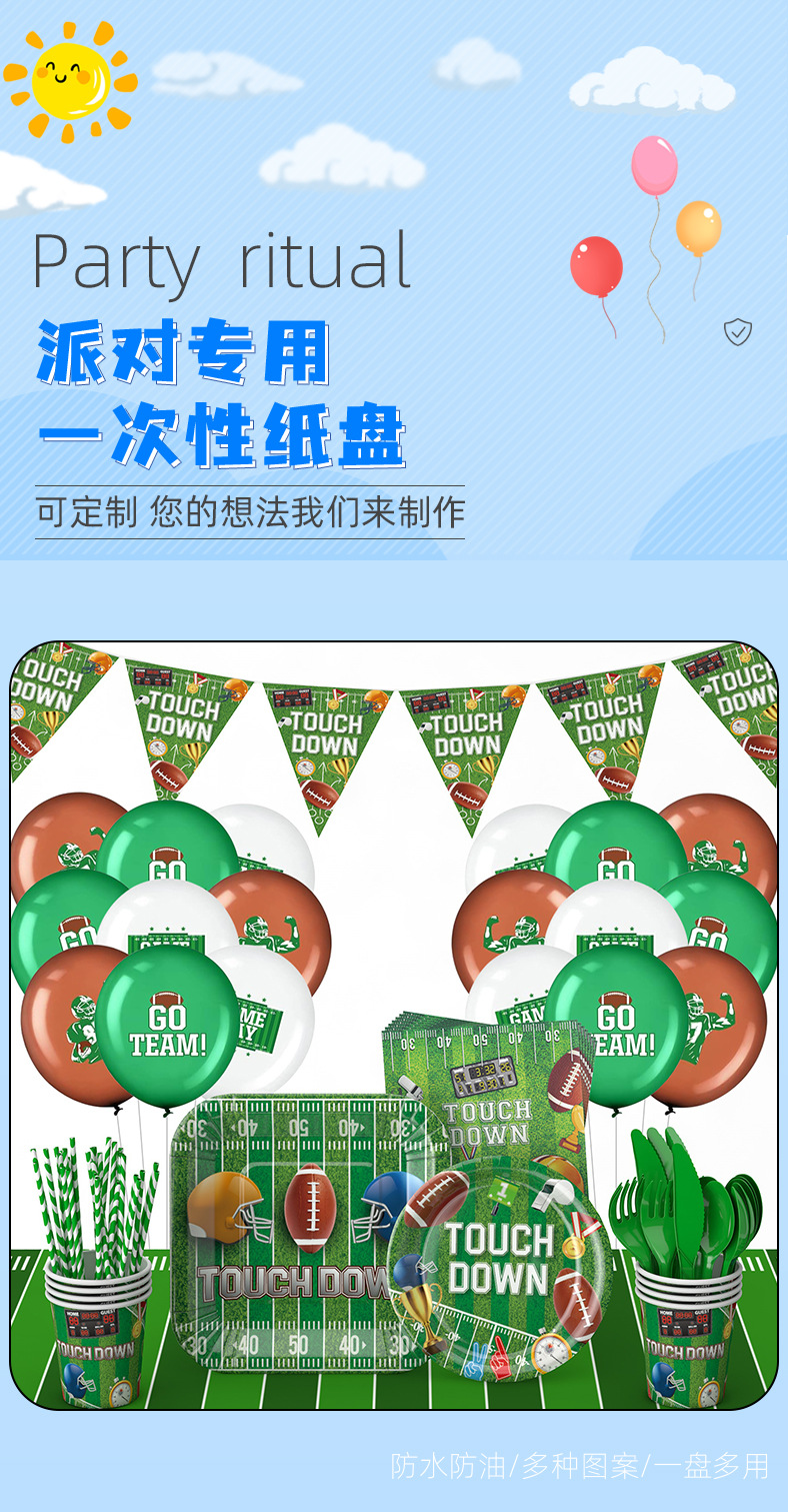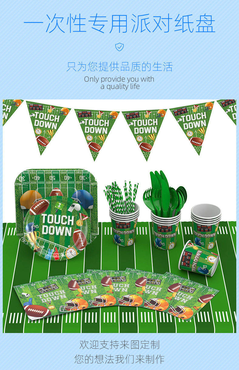 Nuevo Rugby Super Bowl decoración del partido fútbol americano desechable cuadrado plato de papel taza de papel decoración traje
