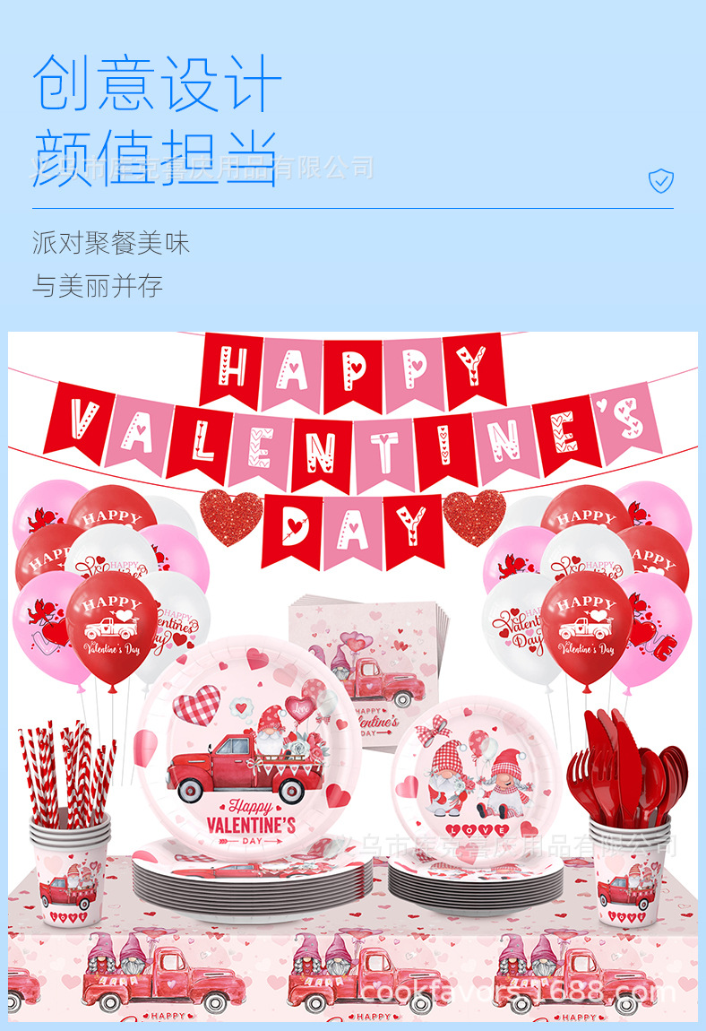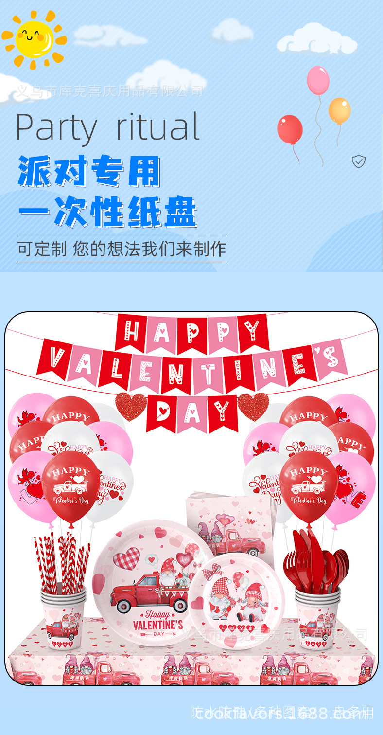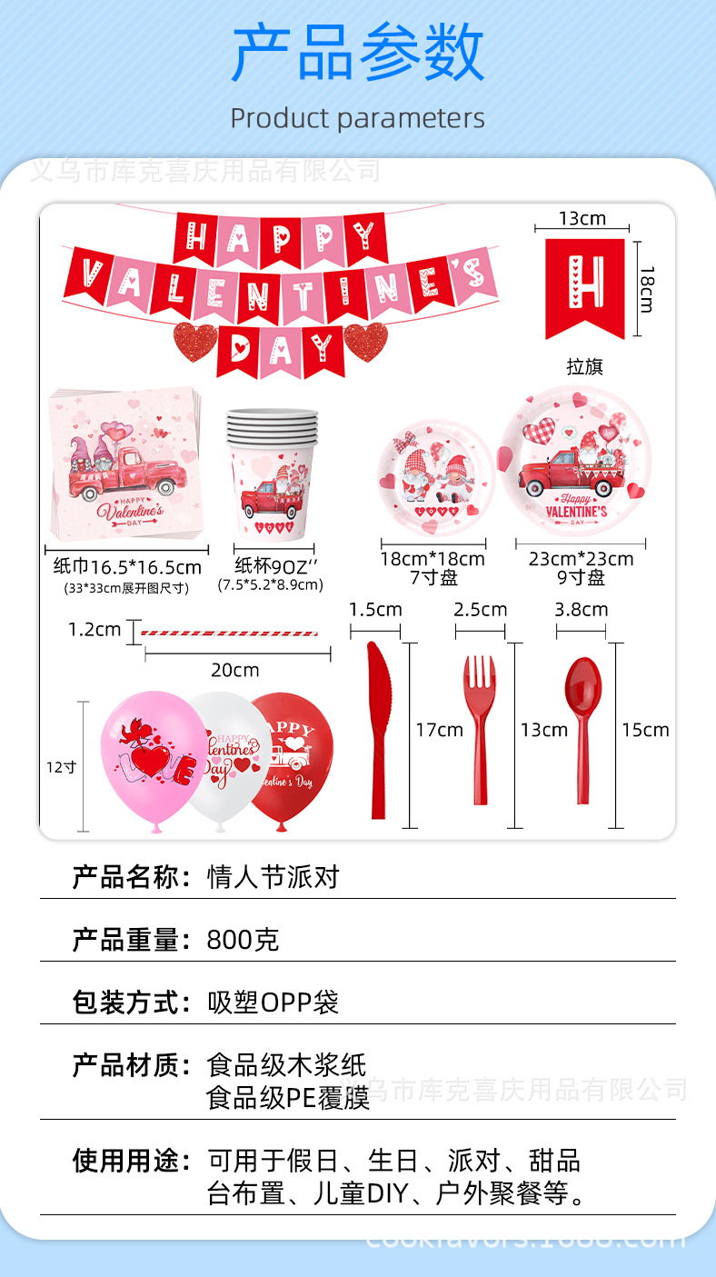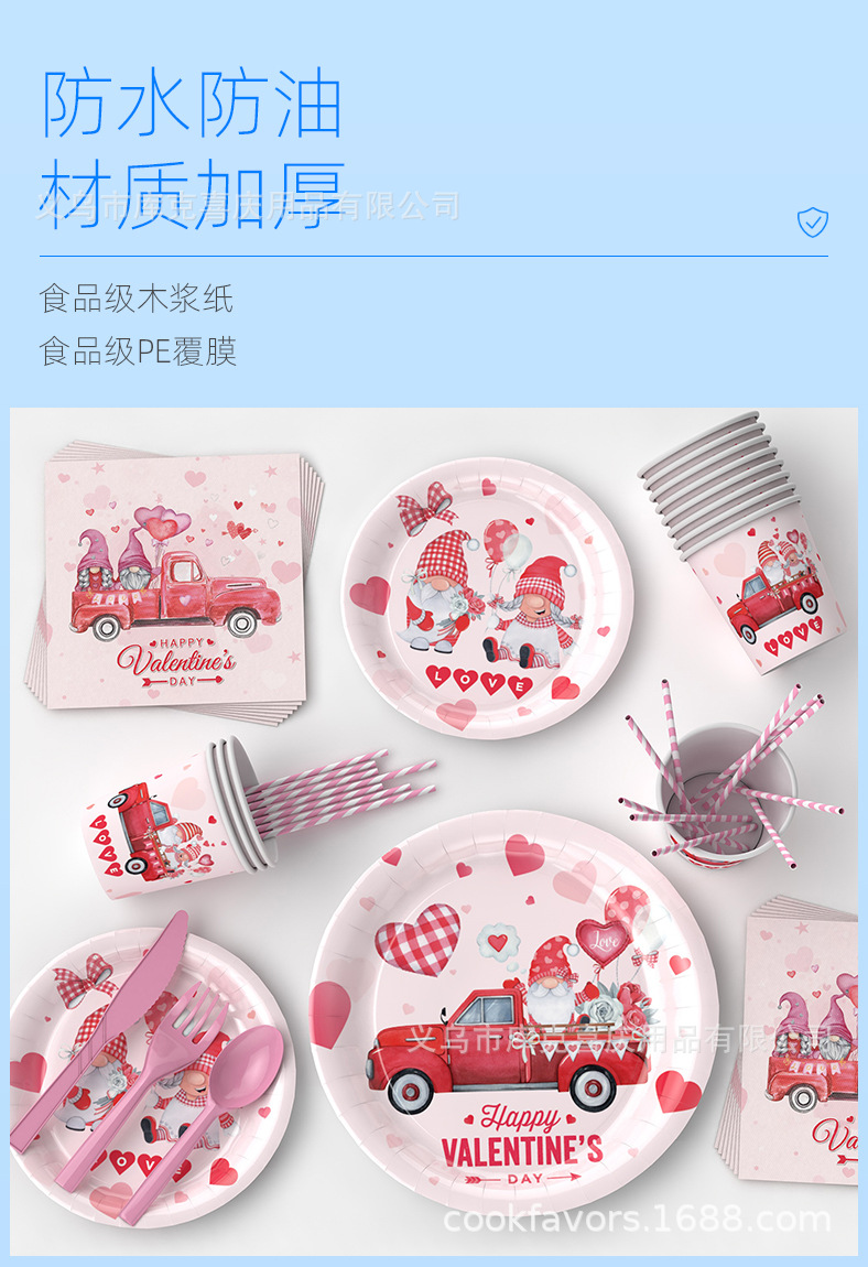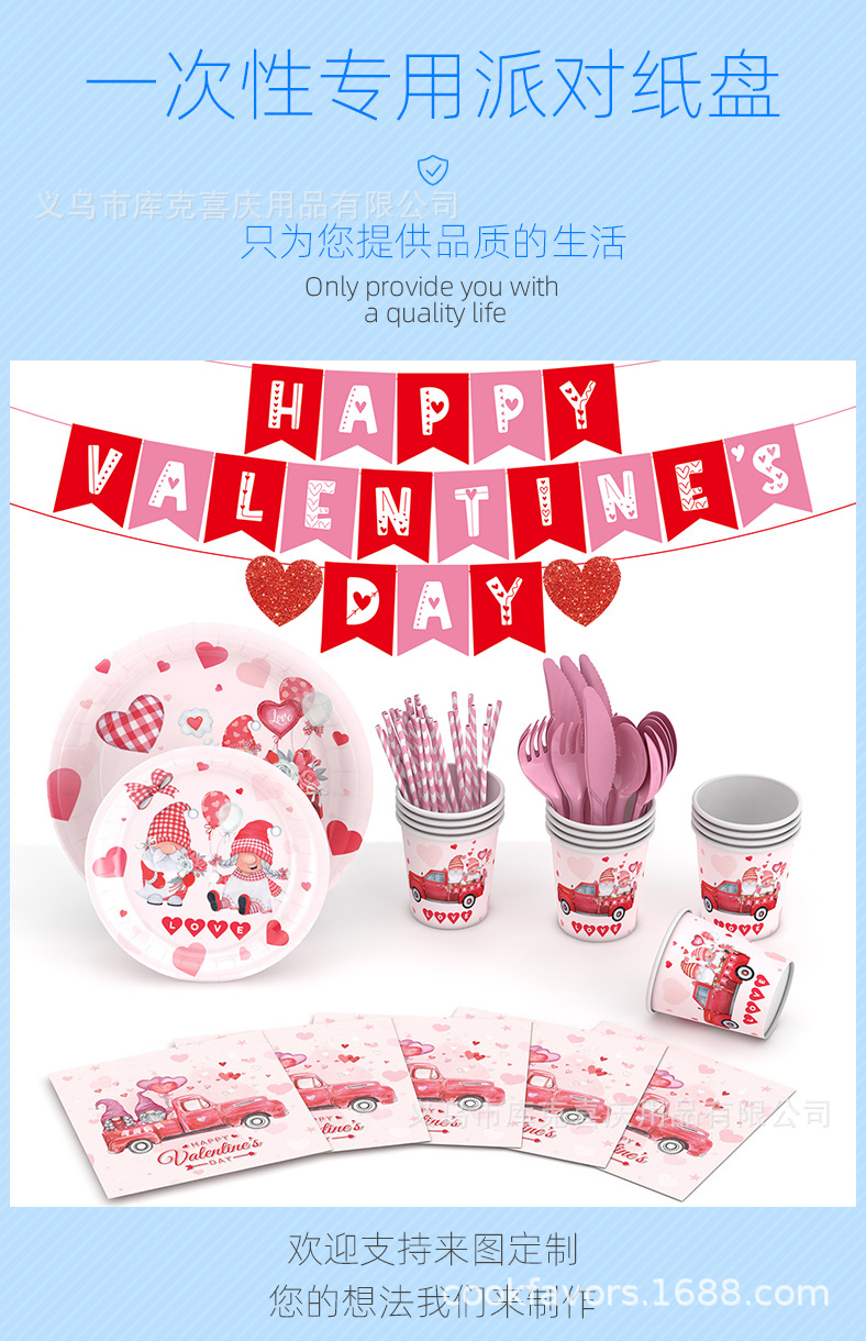 Transfronterizo Día de San Valentín Rosa coche tema Fiesta decoración suministros plato de papel desechable taza de papel decoración traje