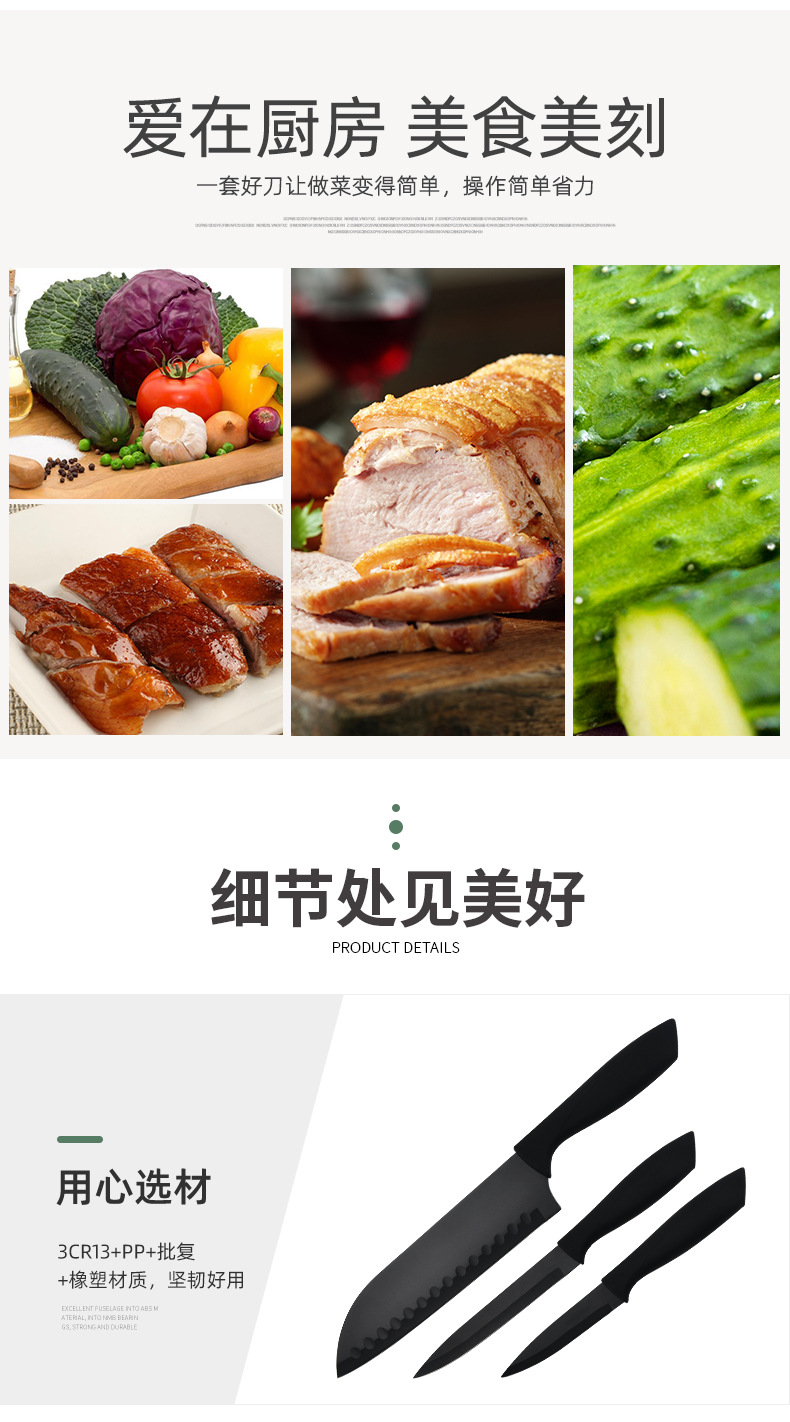 Nuevo cuchillo de cocina cuchillo de frutas negras de tres piezas cuchillo de cocina cuchillo de frutas set stock al por mayor