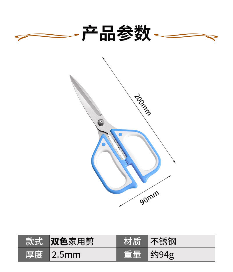 Fábrica al por mayor de acero inoxidable tijeras de hueso de pollo tijeras de oficina puntiagudas tijeras potentes tijeras de cocina multifuncionales para alimentos complementarios tijeras multiusos