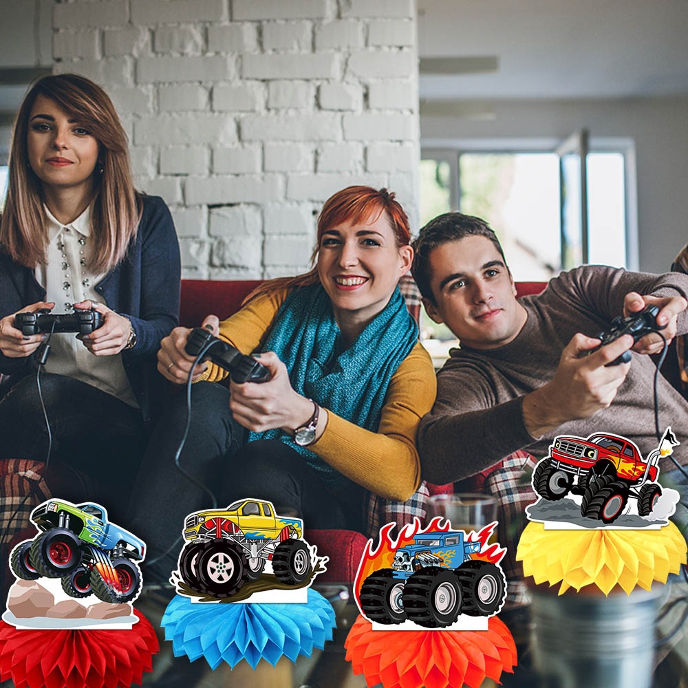 Decoración de fiesta de cumpleaños de Amazon banner de vehículo todoterreno bandera de tracción camión monstruo decoración de cumpleaños colgante en espiral