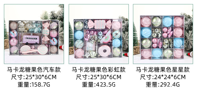 Transfronterizos nueva decoración de Navidad pintada caja de bolas de Navidad macaron caramelo arco iris colgante accesorios de bola de forma especial