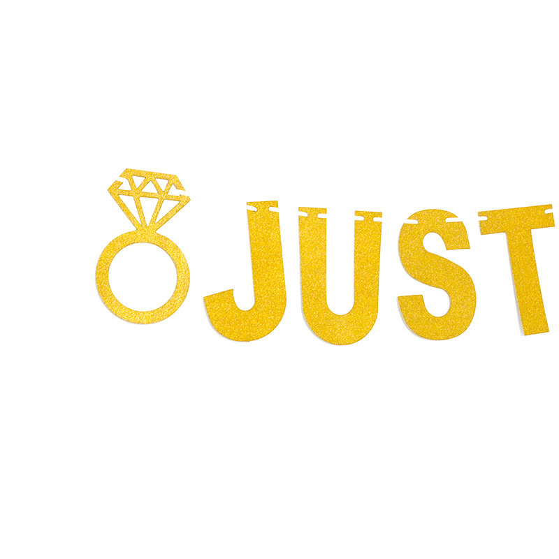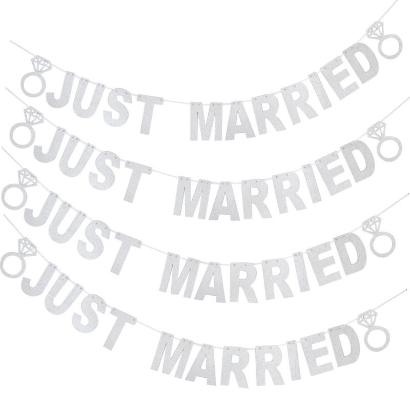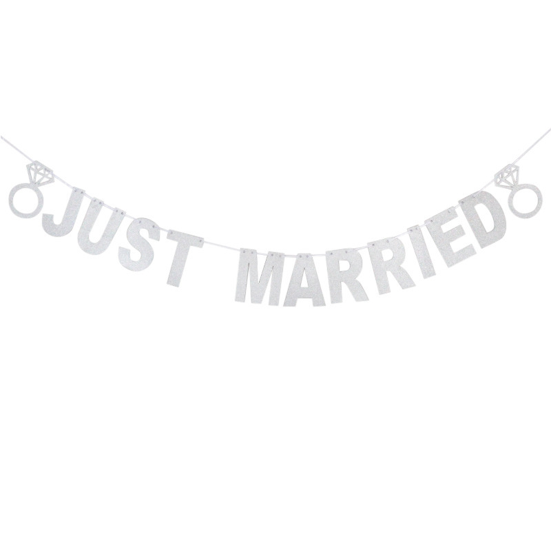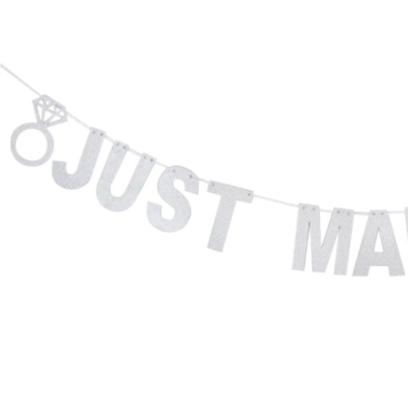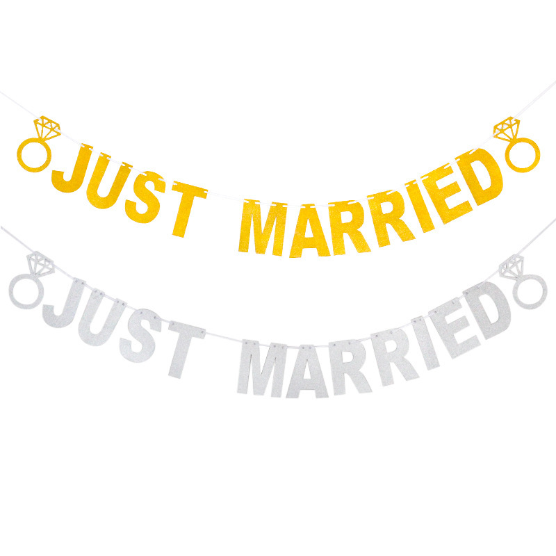 Partido de la boda tire bandera suministro directo de fábrica papel brillo oro plata JUSTMARRIED anillo carta tire flor