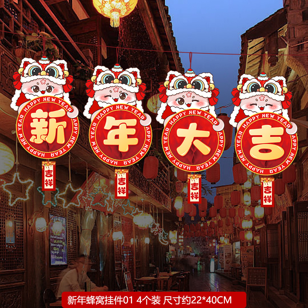 2025 Año Nuevo Festival de Primavera Día de Año Nuevo Decoración Colgante de bola de panal Tienda Mall Tienda Actividad de atmósfera Decoración
