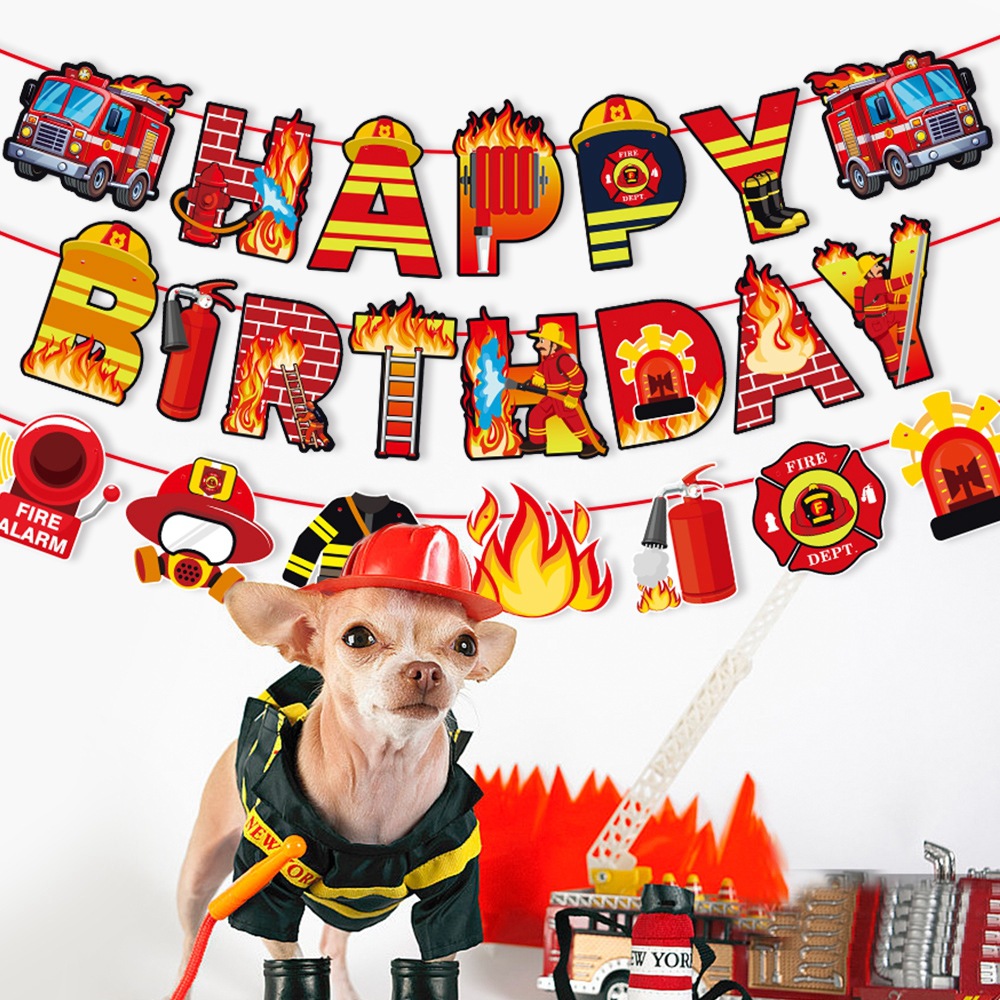 Nuevo tema de lucha contra incendios transfronterizo decoración de fiesta de cumpleaños bandera de dibujo decoración de cumpleaños bombero diseño de decoración de cumpleaños
