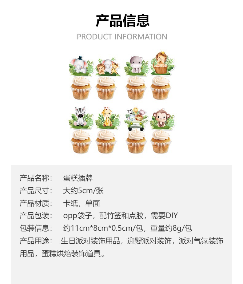 Fabricantes al por mayor decoración de fiesta de bebés tarjetas de pastel baby shower animal tarjetas de postre decoración de mesa