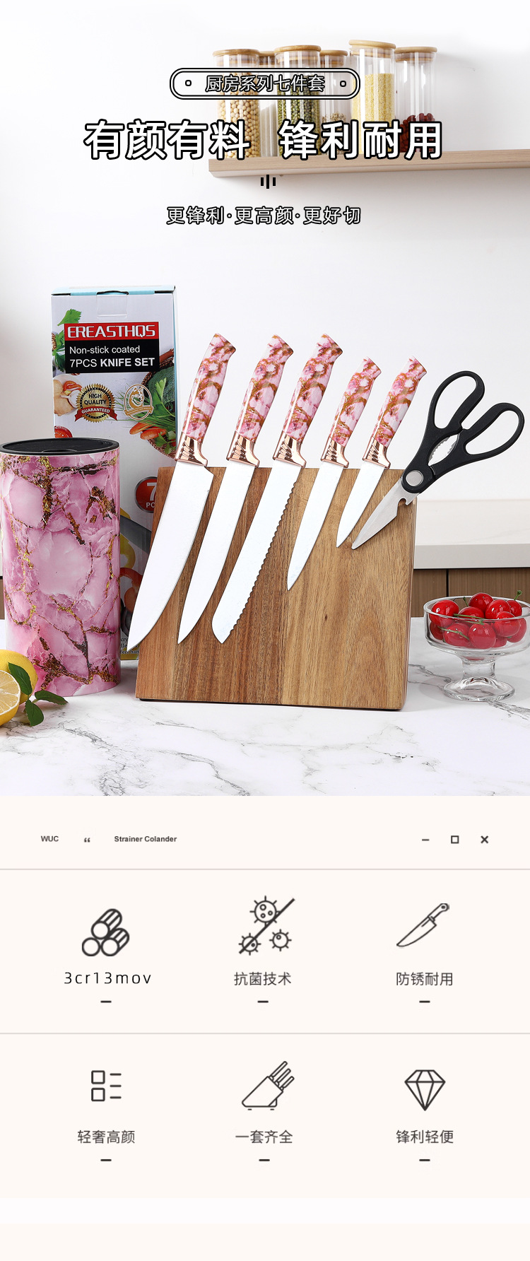 Cuchillo de cocina Cuchillo de chef Juego de siete piezas Cuchillo de cocina doméstico de acero inoxidable Combinación de tijeras Juego de cuchillos de asiento redondo de color