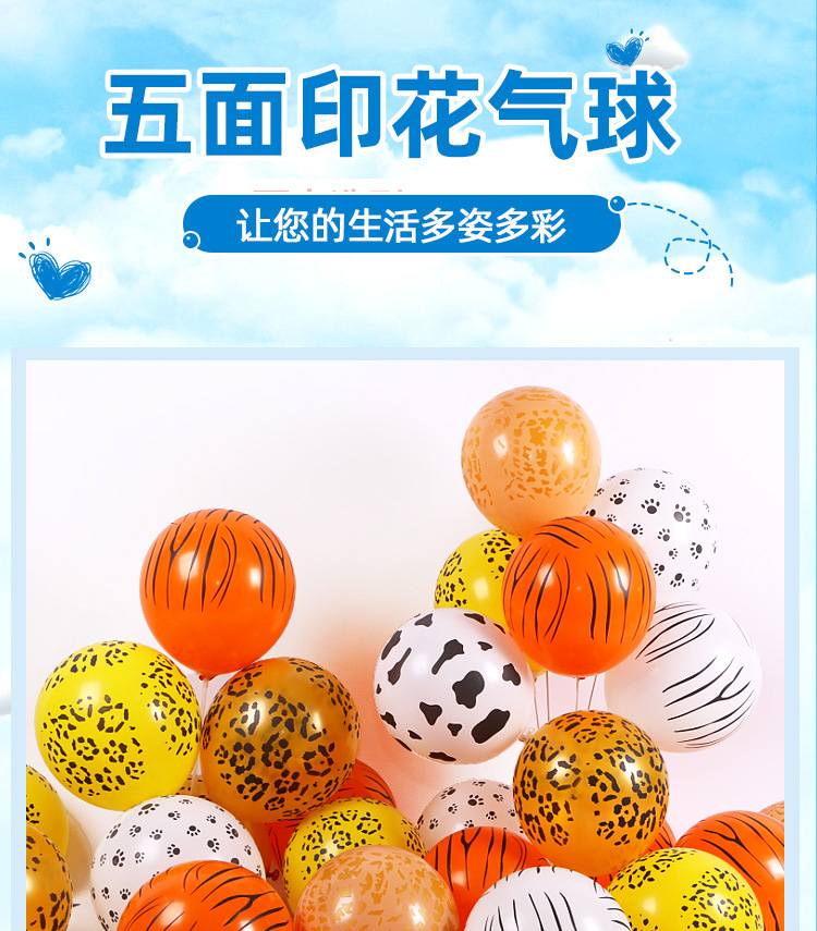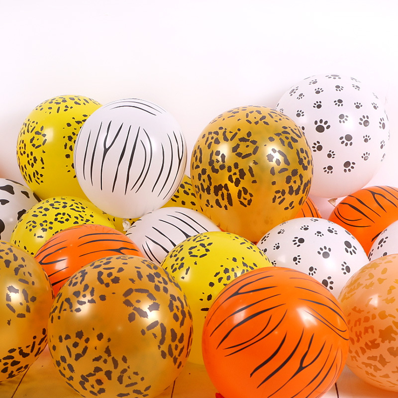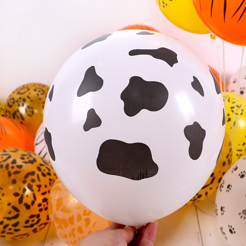 12 pulgadas animación jungla fiesta de globo leopardo impresión de cinco lados huellas de pies de vaca set de globo de látex
