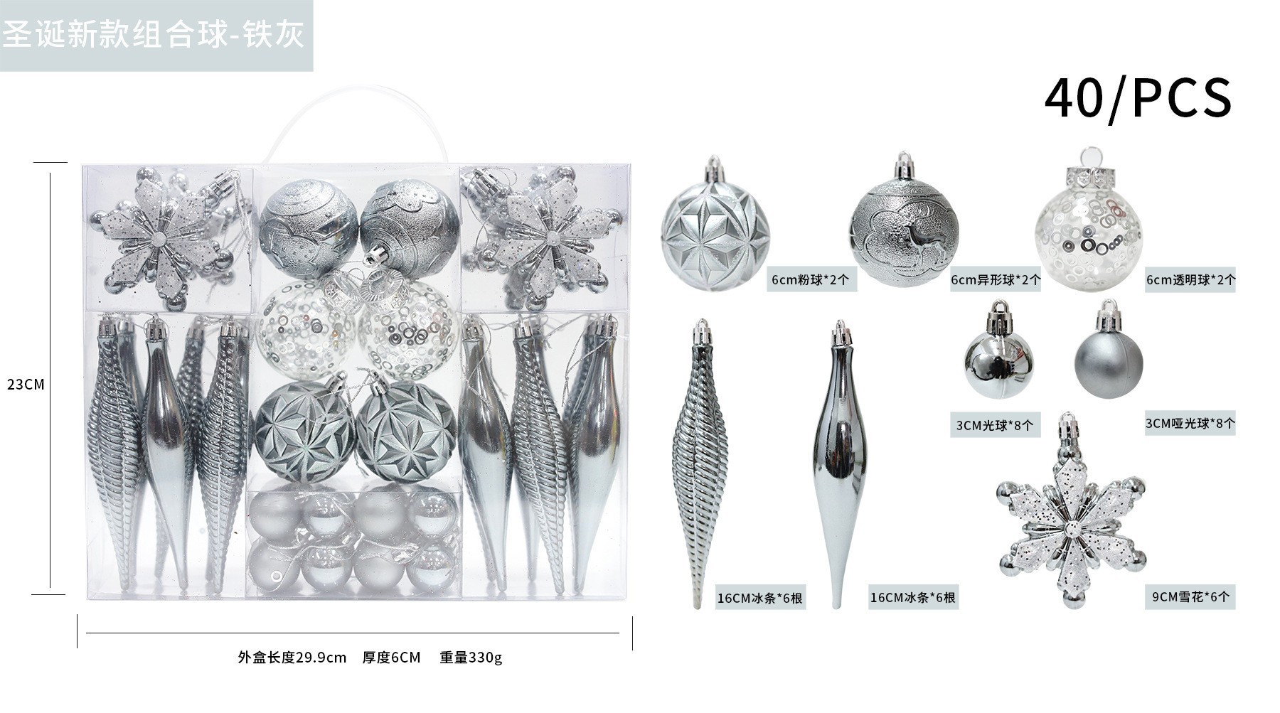 Navidad nuevo especial en forma de 40 bolas de plástico electrochapadas clásico BOLA DE Navidad colgando adornos árbol de Navidad colgando decoraciones conjunto