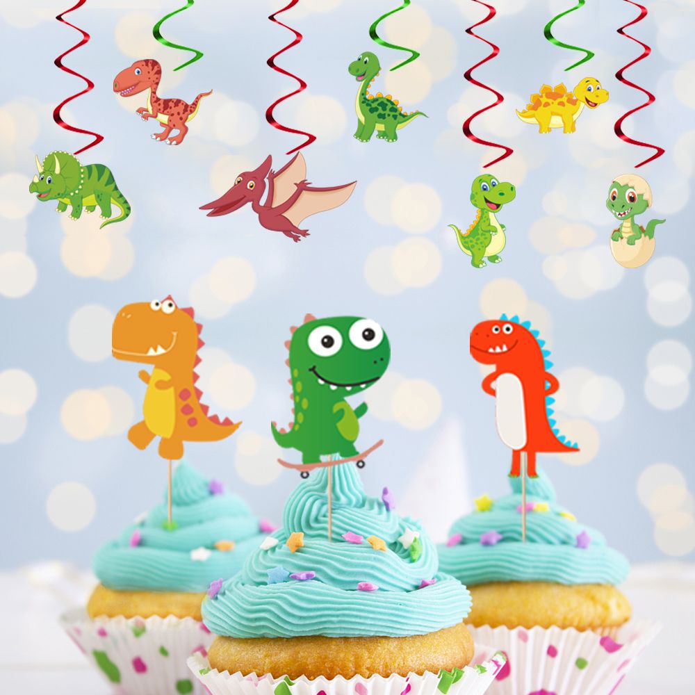 Amazonas bosque dinosaurio tire bandera espiral colgante decoración cumpleaños decoración banner animal pastel Tarjeta de inserción decoraciones del partido