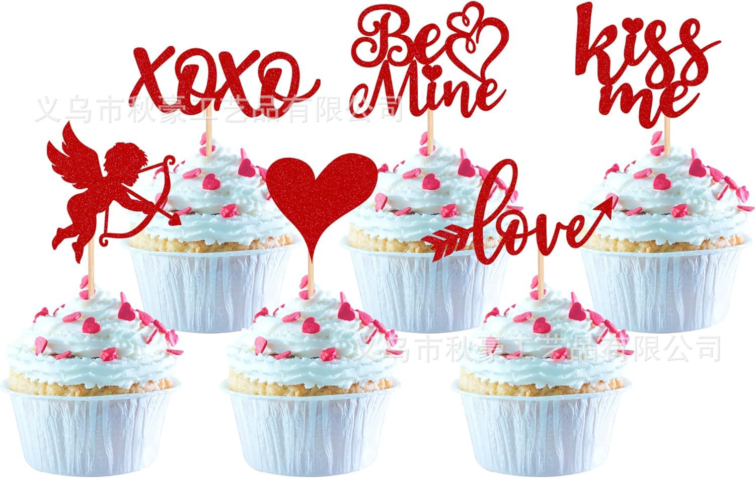 Venta caliente del día de San Valentín pastel de cumpleaños tarjeta de inserción decoración XOXO amor tema de boda postre mesa de inserción