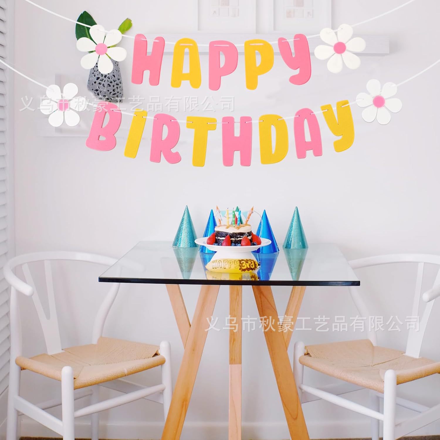 Nuevas flores de letras transfronterizas felices de tirar de la bandera tema de la bandera decoración del fondo de la fiesta