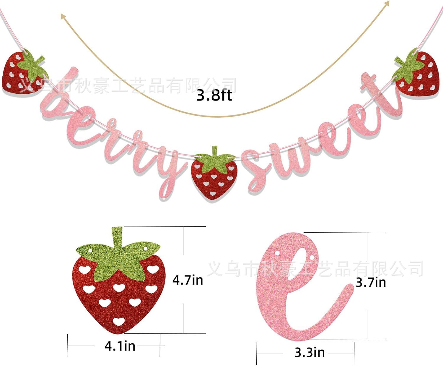 Berry Sweet Banner polvo brillante de fresa tira bandera de fresa banner tema de cumpleaños decoración de fiesta