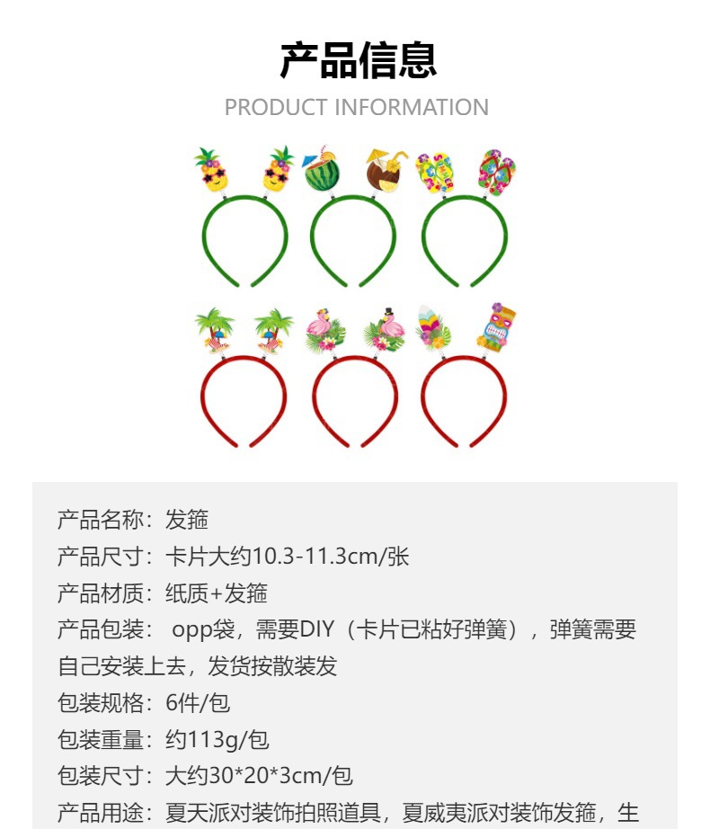 Nueva diadema de decoración de fiesta hawaiana, ambiente de fiesta de verano, suministros de vestir, diadema, accesorios de fotografía divertidos