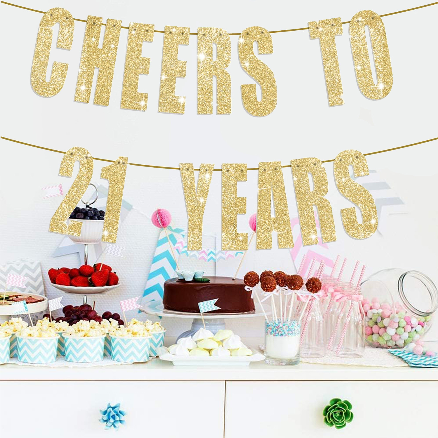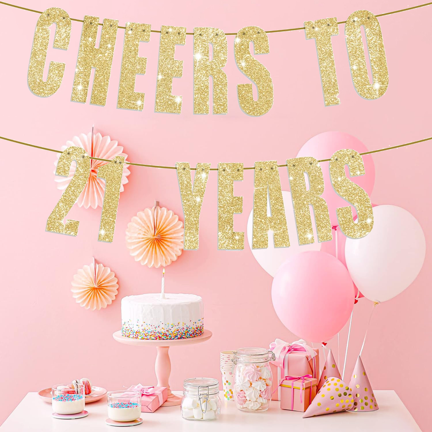 21 años de cumpleaños bandera de letras doradas fiesta interior bandera de flores decoración transfronteriza nueva