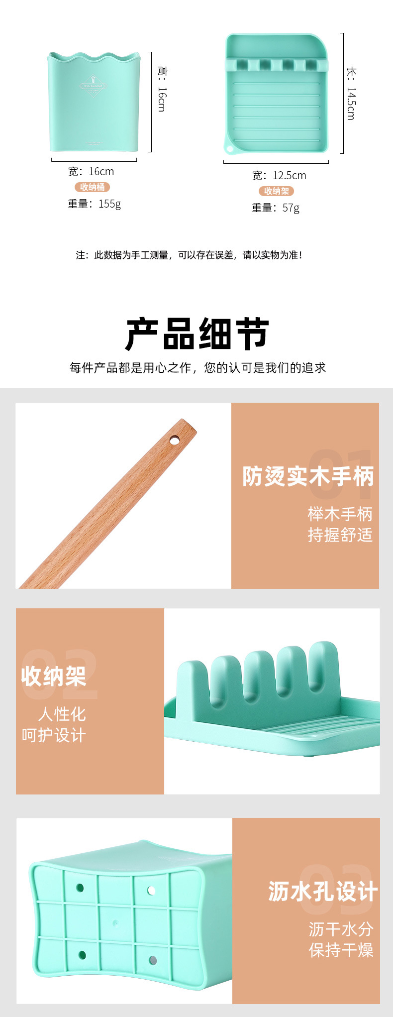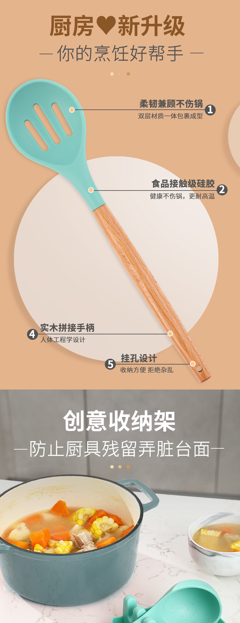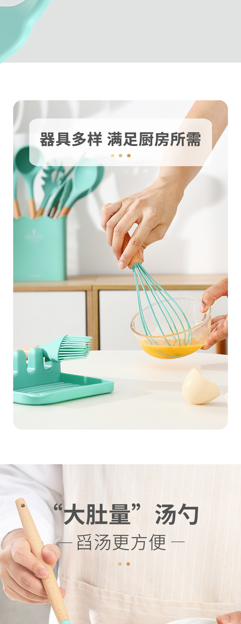 Venta caliente transfronteriza juego de utensilios de cocina de silicona creativa mango de madera con cubo 13 piezas de silicona espátula cuchara herramientas de cocina de silicona