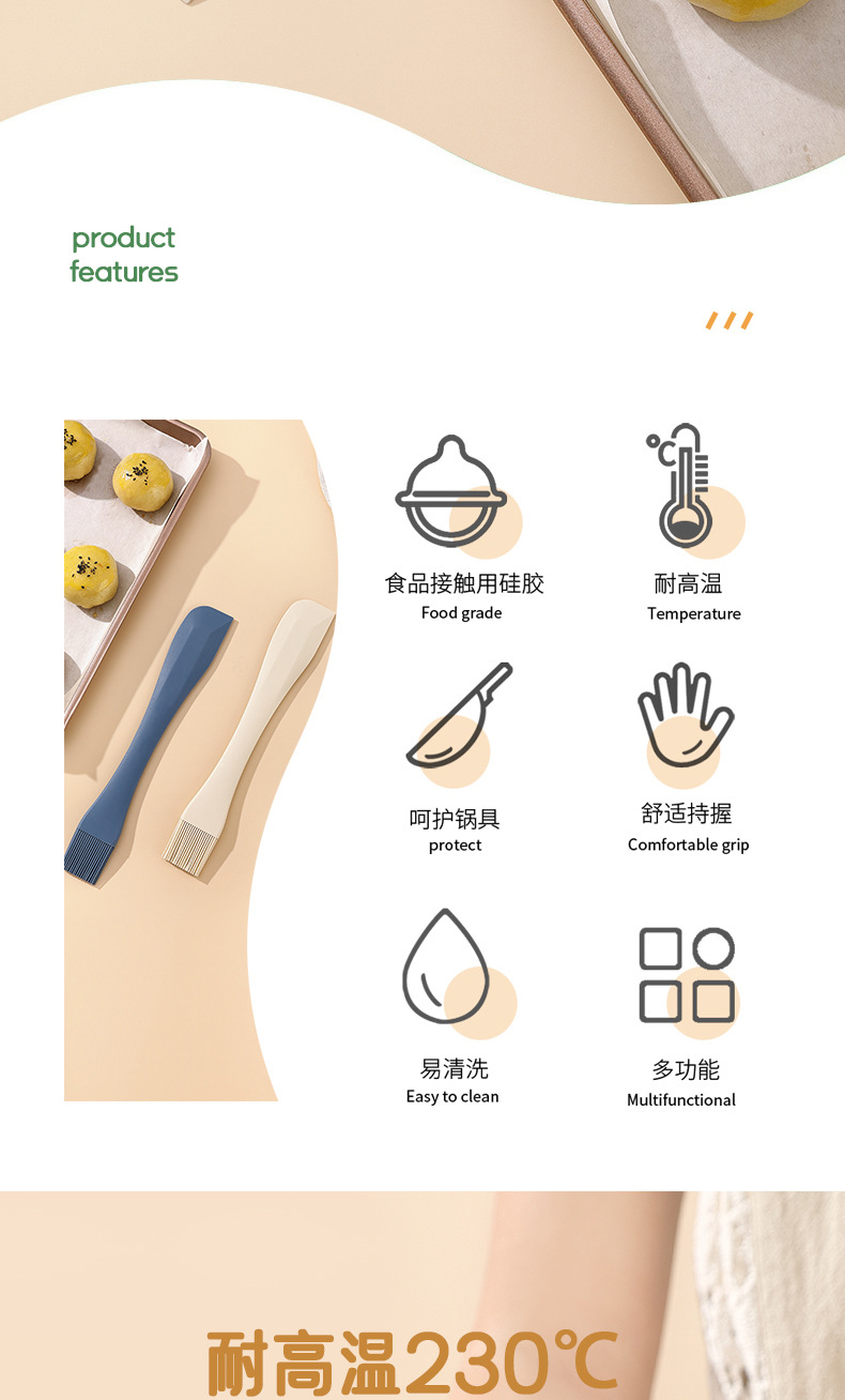 Nuevo tipo integral de cepillo de silicona de doble propósito raspador de silicona de grado alimenticio raspador de crema de cocina herramienta de limpieza