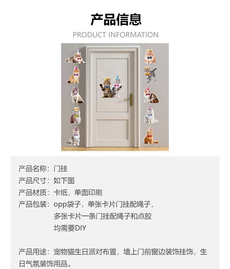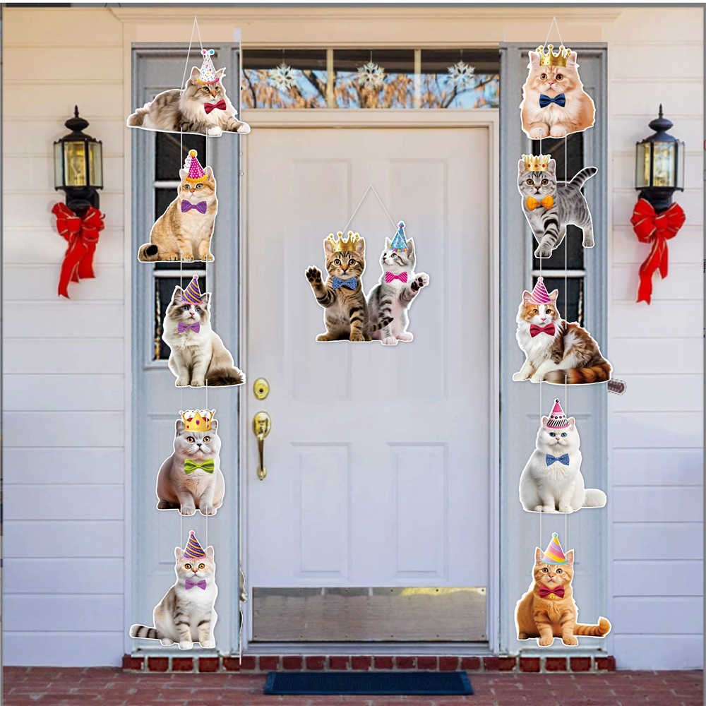 Nueva mascota tema de gato decoración de fiesta de cumpleaños puerta colgante decoración de cumpleaños gato colgante en la pared de la puerta