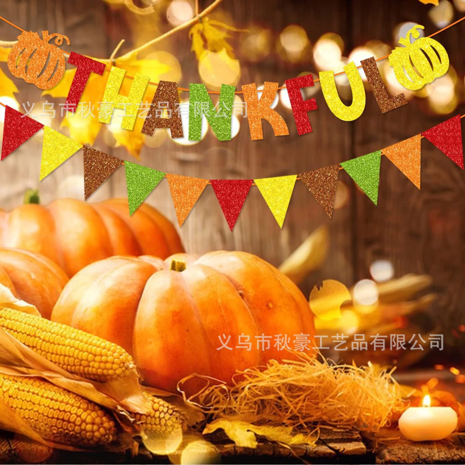 Banner de acción de gracias intermitente con logo de hoja de arce de calabaza banderín de acción de gracias cosecha feliz de otoño
