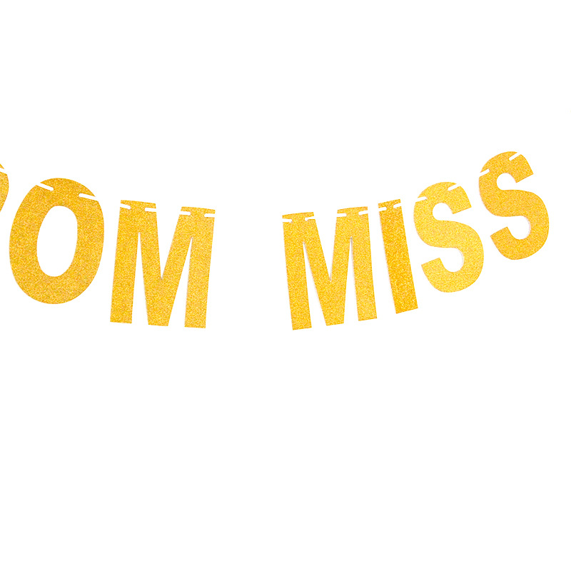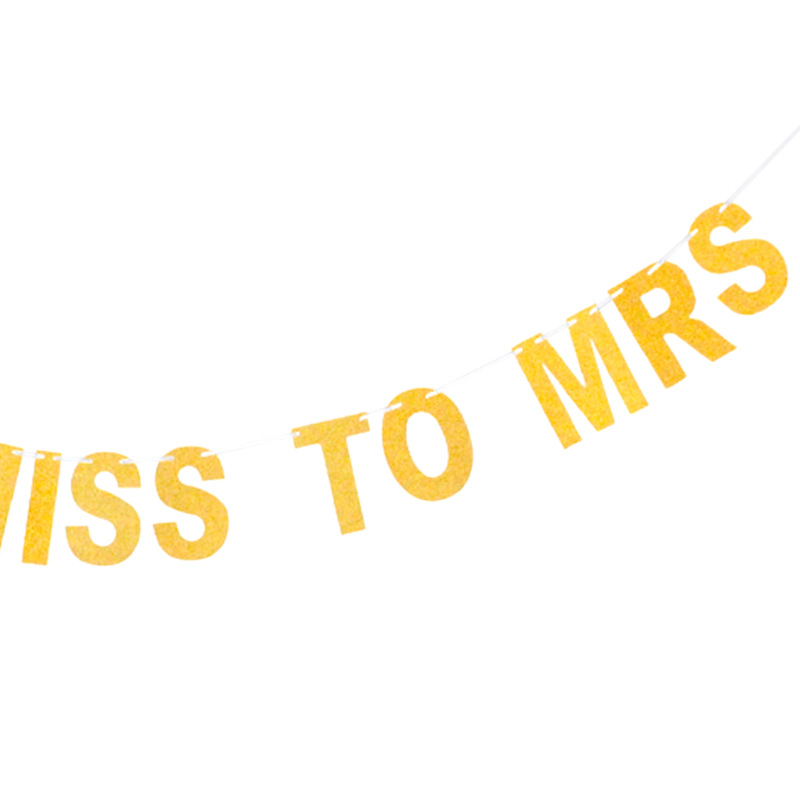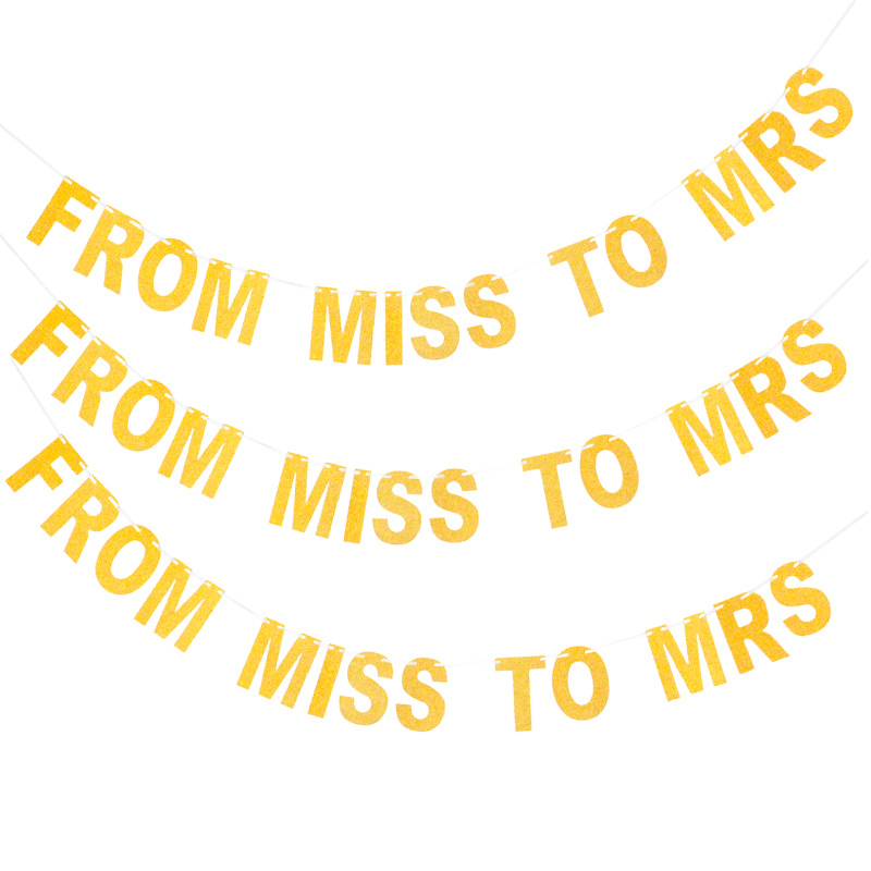 Banderas de la fiesta de la boda de la señorita a la señora polvo brillante oro plata letras de papel dibujar flores