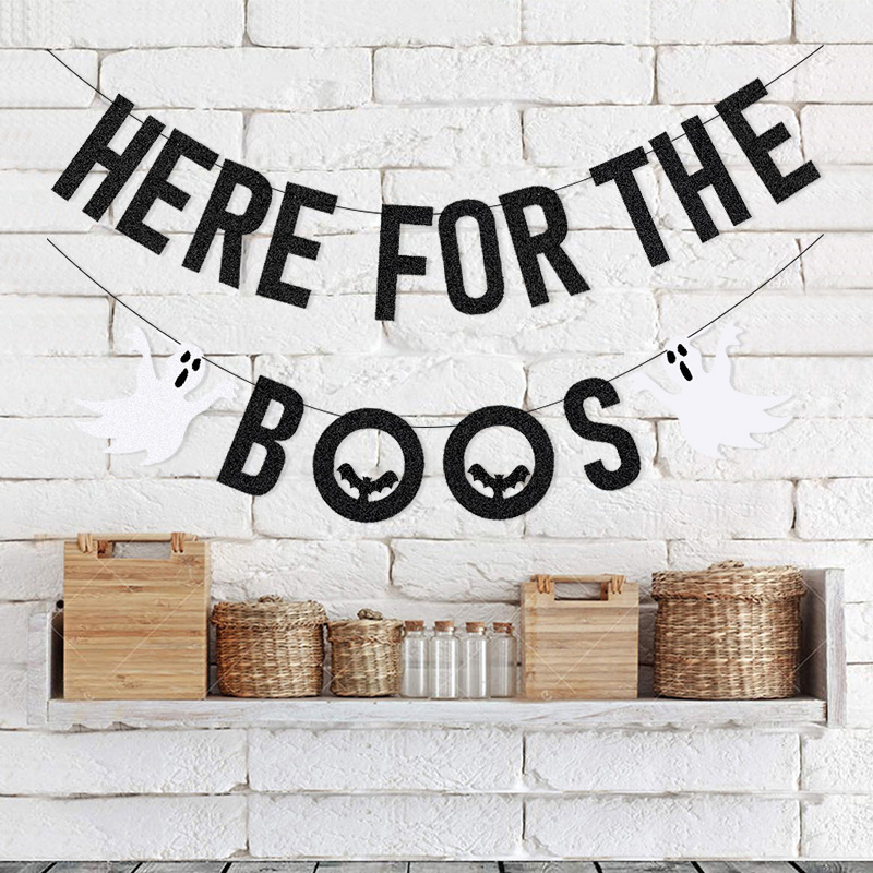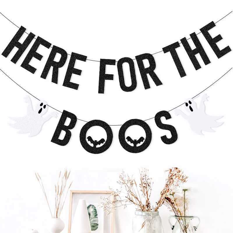 Fiesta transfronteriza tira banderas diseño decoración de Halloween AQUÍ PARA EL BOOS Bat Letters tira banderas