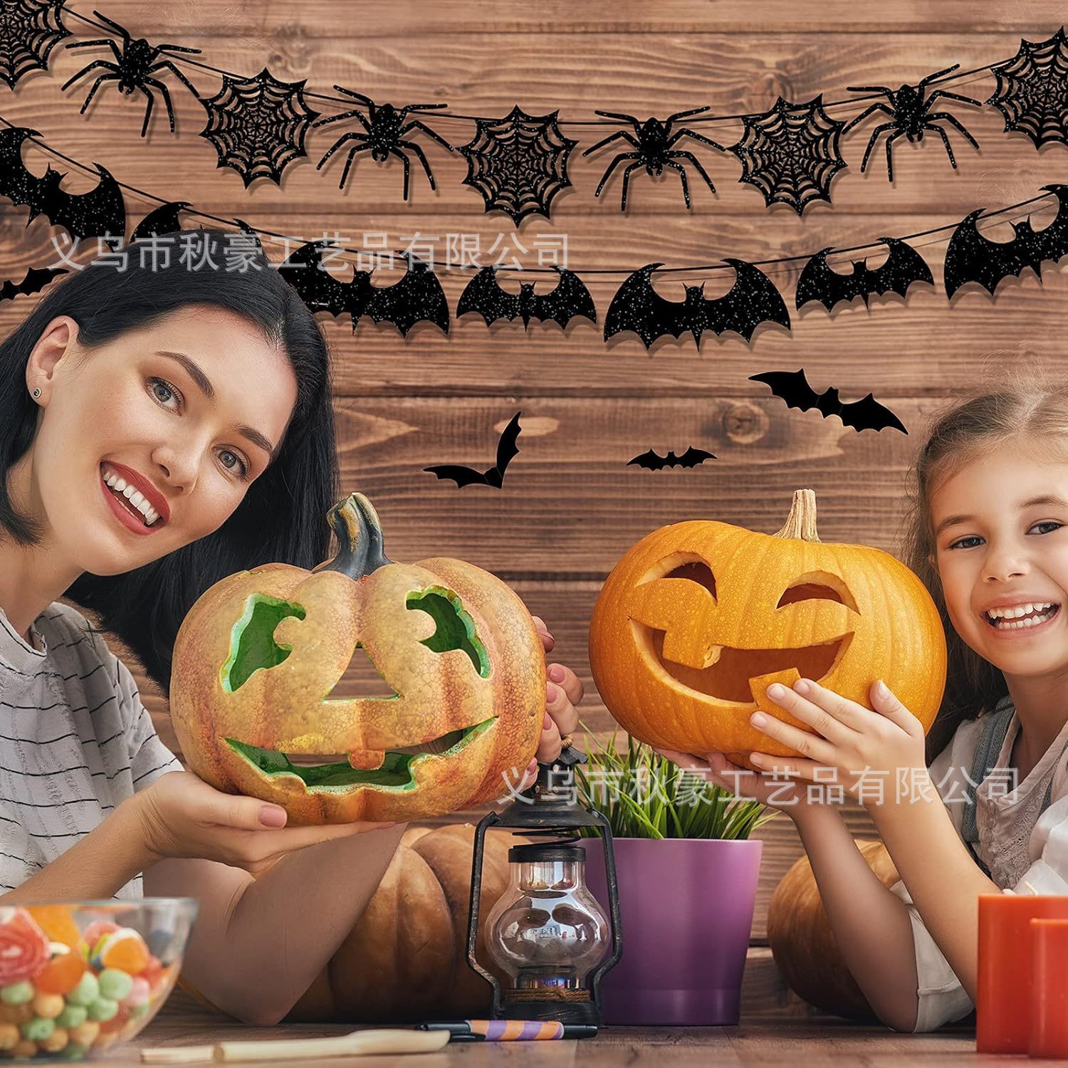 Decoración de Halloween bandera flash negra araña fantasma guirnalda 2024 nueva pegatina de pared de murciélago 3D colgante