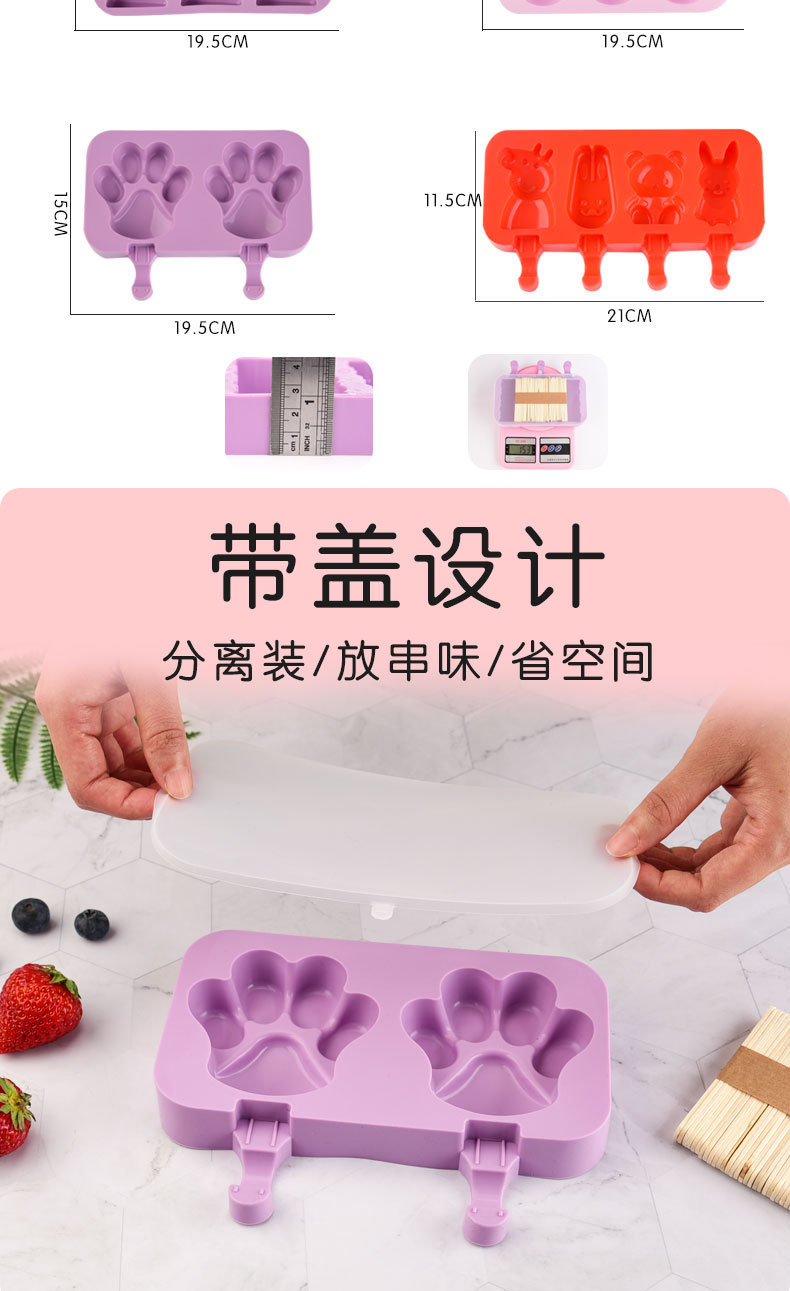 Molde de helado de silicona de verano helado molde de helado de dibujos animados molde de helado creativo con cubierta molde con palo