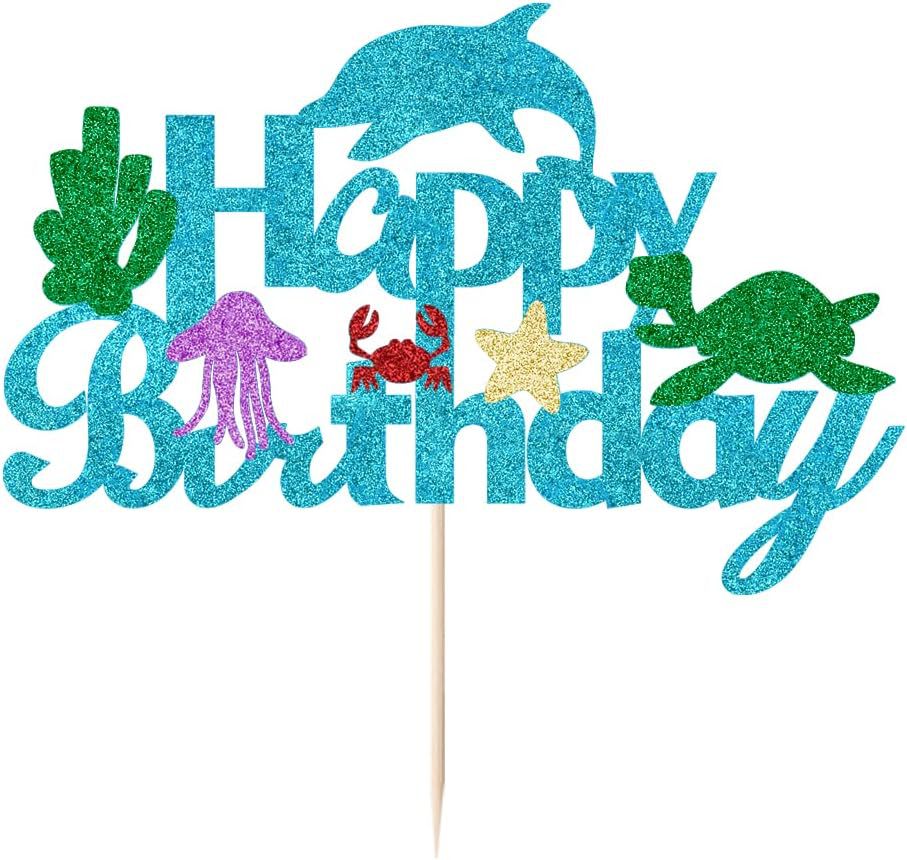 2024 nuevo estilo feliz cumpleaños decoración de pastel tema de animales marinos fiesta de cumpleaños decoración de pastel transfronterizo
