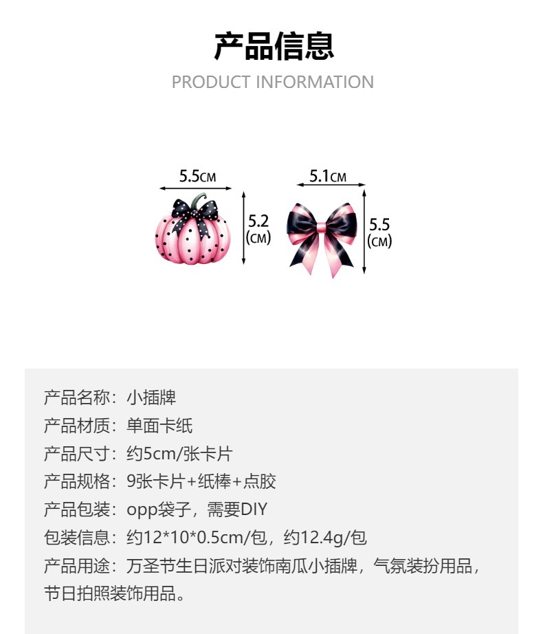 | Tamaño | 9 pequeñas tarjetas insertadas (mezcla de 5 calabazas + 4 lazos), W-00011 |