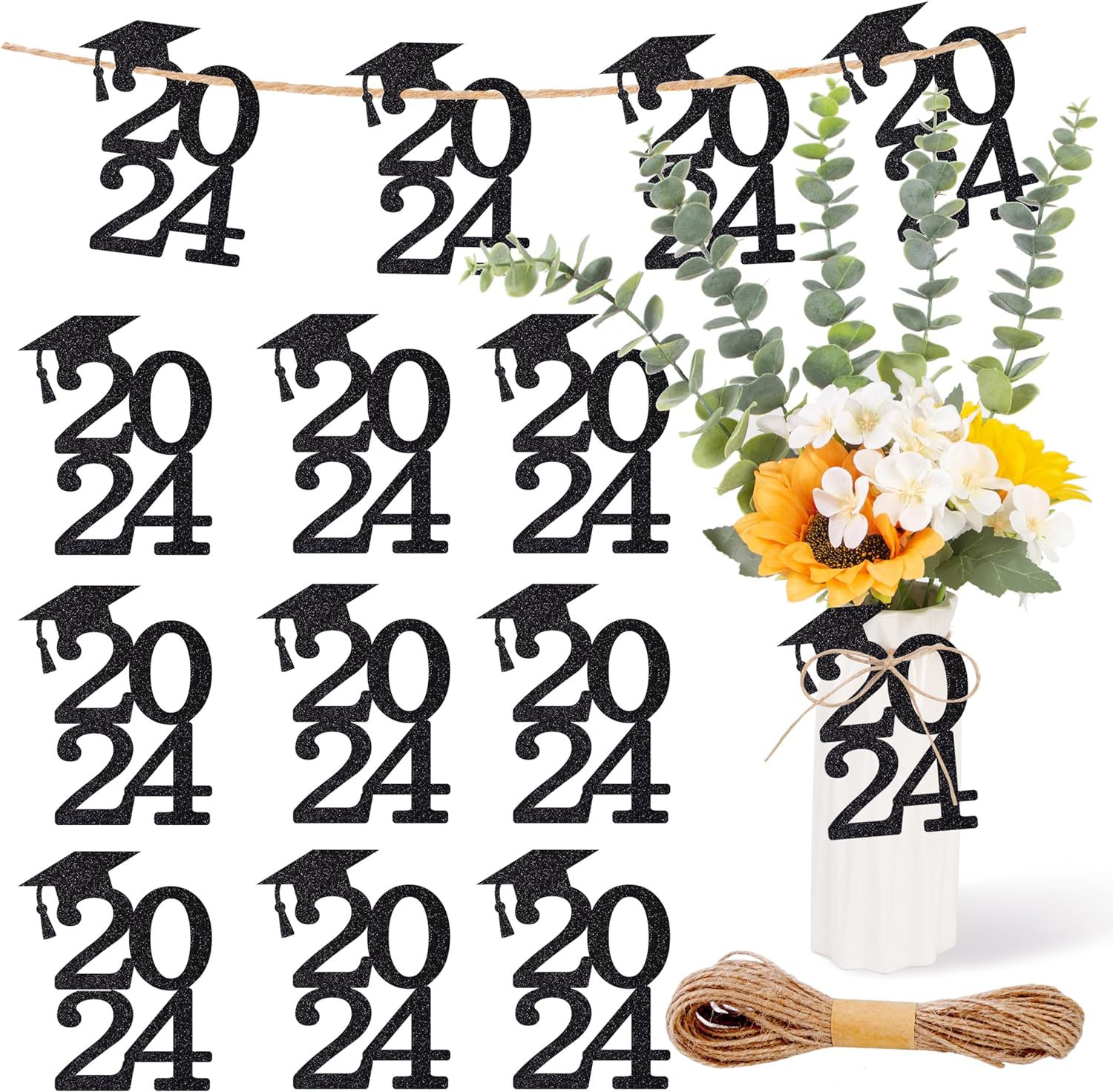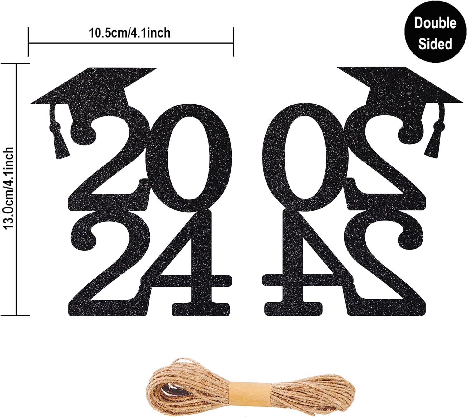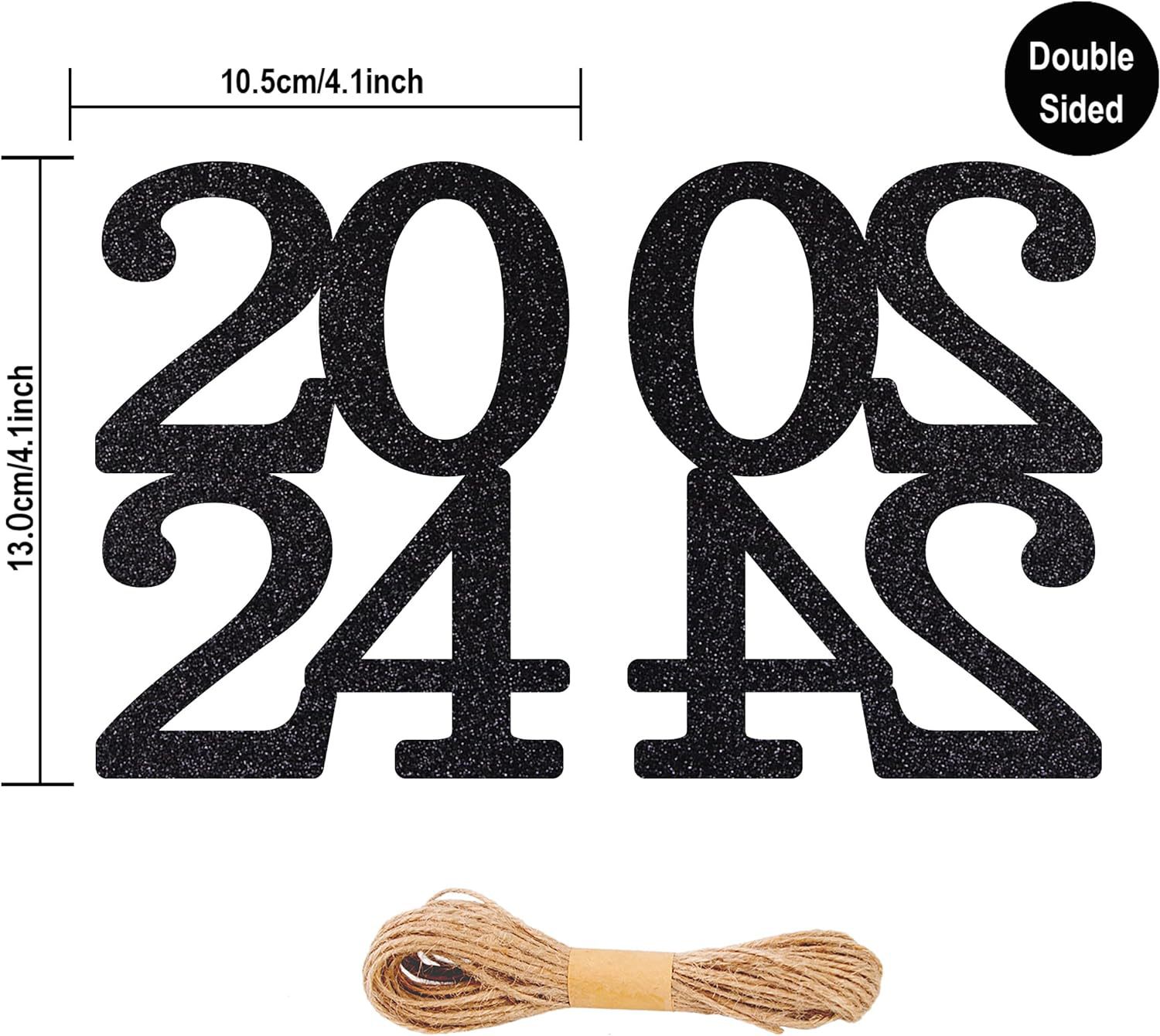 24 piezas de brillo negro cinta de doble cara 2024 decoraciones temporada de graduación suministros de fiesta corte de papel pull bandera transfronteriza Venta caliente
