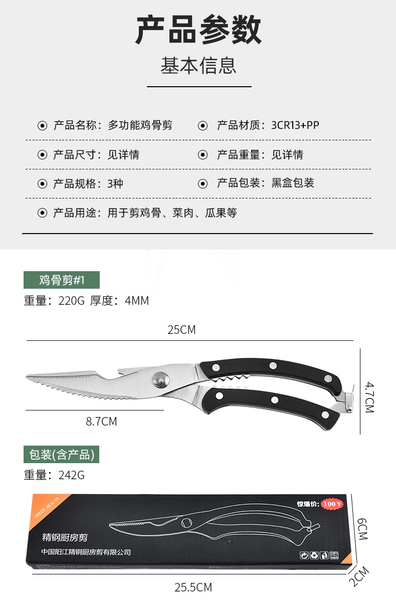 Potentes tijeras de hueso de pollo de acero inoxidable tijeras de cocina tijeras de alimentos tijeras multifuncionales tijeras de usuario doméstico
