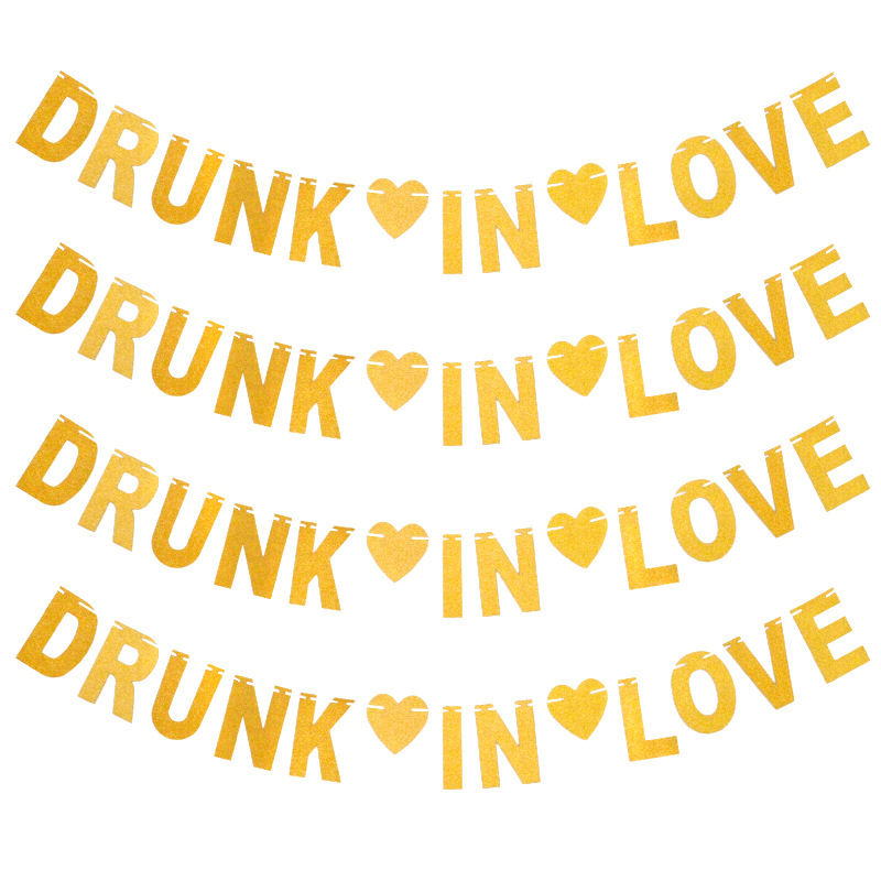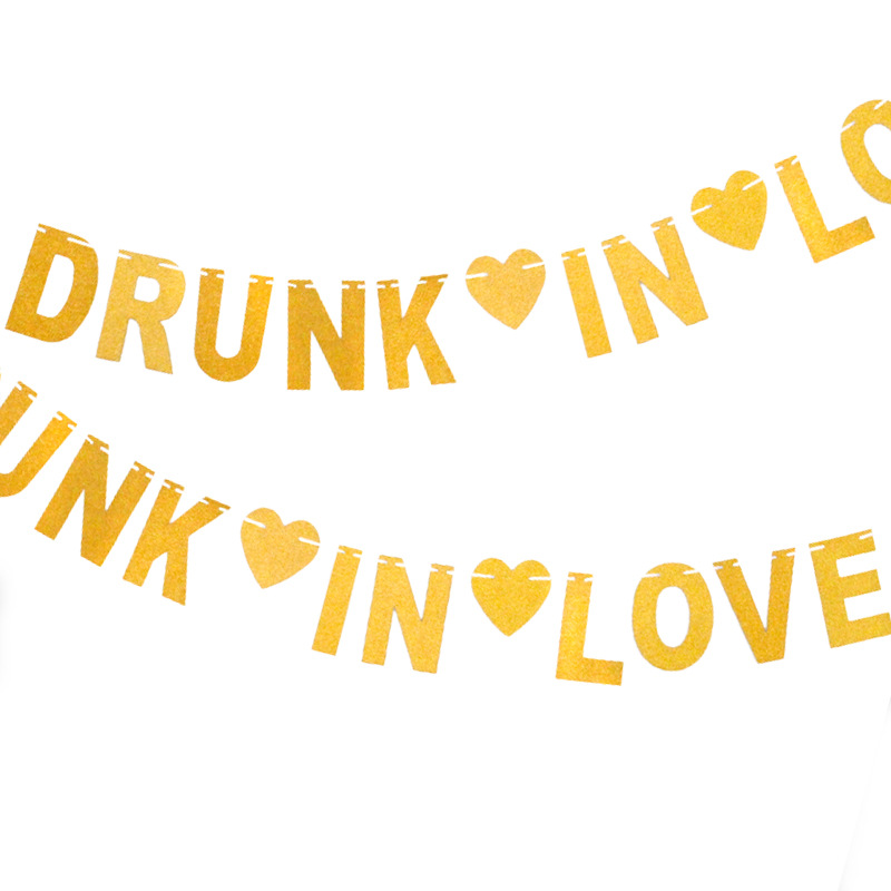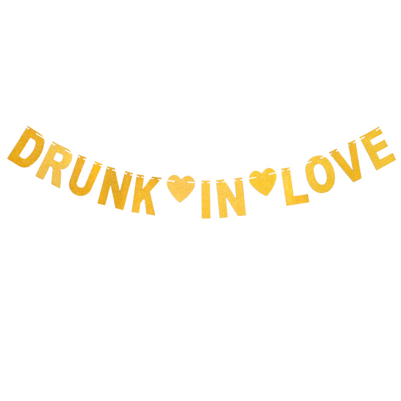 Cruz-Frontera de boda tira tirar bandera borracho en amor brillo oro letra etiqueta tirar flor fábrica suministro directo