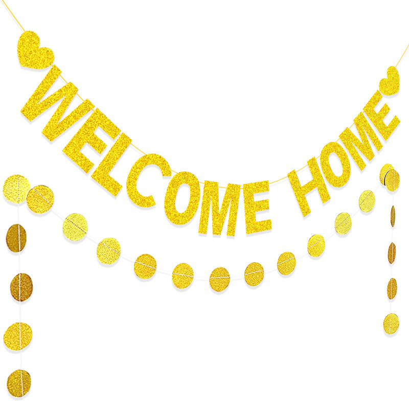 Bienvenido a casa baby shower amor brillo guirnalda partido cadena redonda bandera