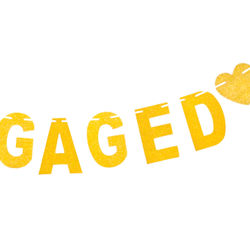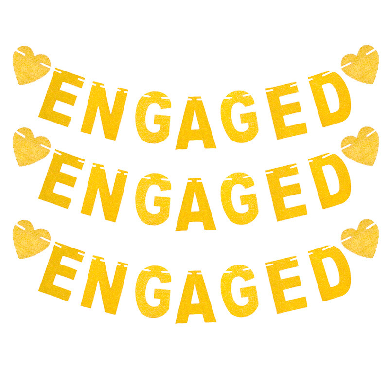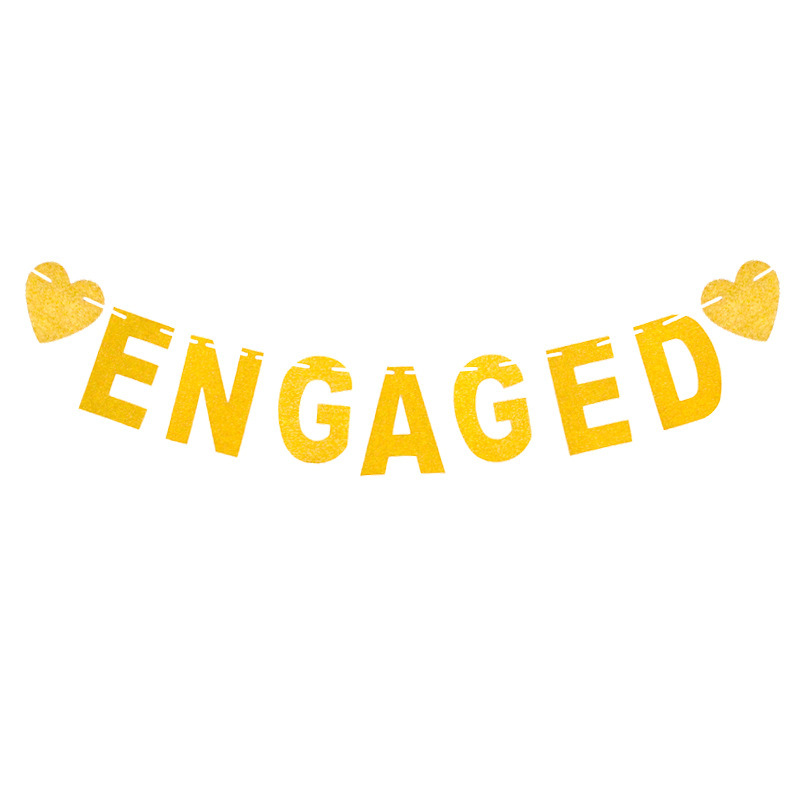 Suministro directo de fábrica ENGAGED Gold Glitter Love pull Flower diseño de decoración de una sola fiesta bandera de una sola pieza pull Flag
