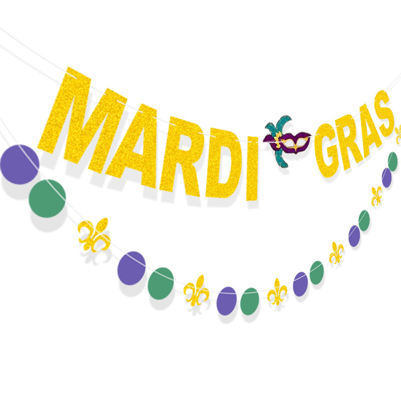Suministro directo de fábrica europeo y americano San Patricio carnaval decoración cadena redonda bandera Mardi Gras Glitter Garland