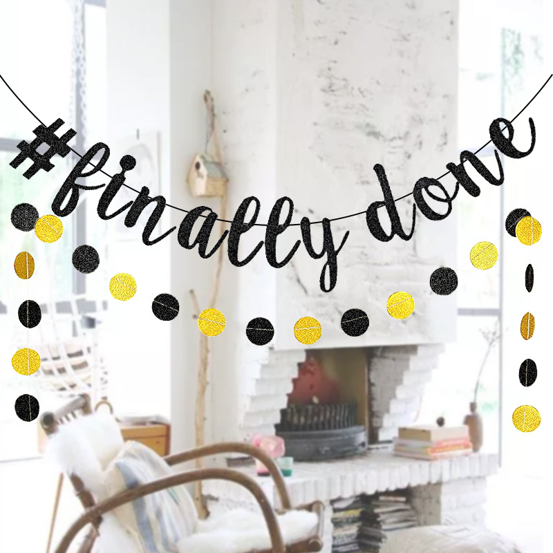 Negro finalmente hecho graduación fiesta decoración cadena bandera carta decoración fiesta de cumpleaños tire bandera