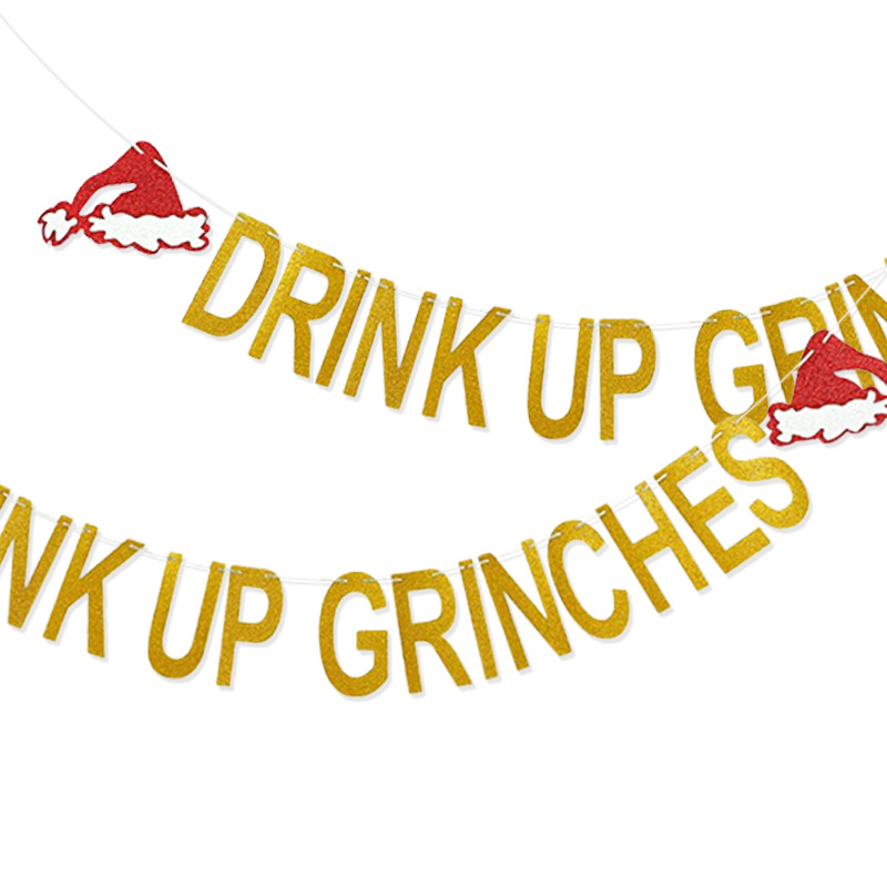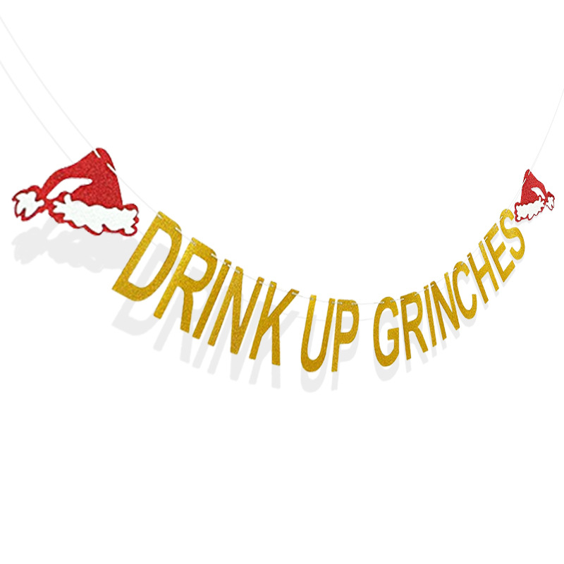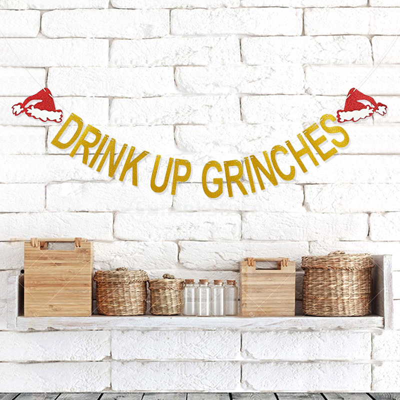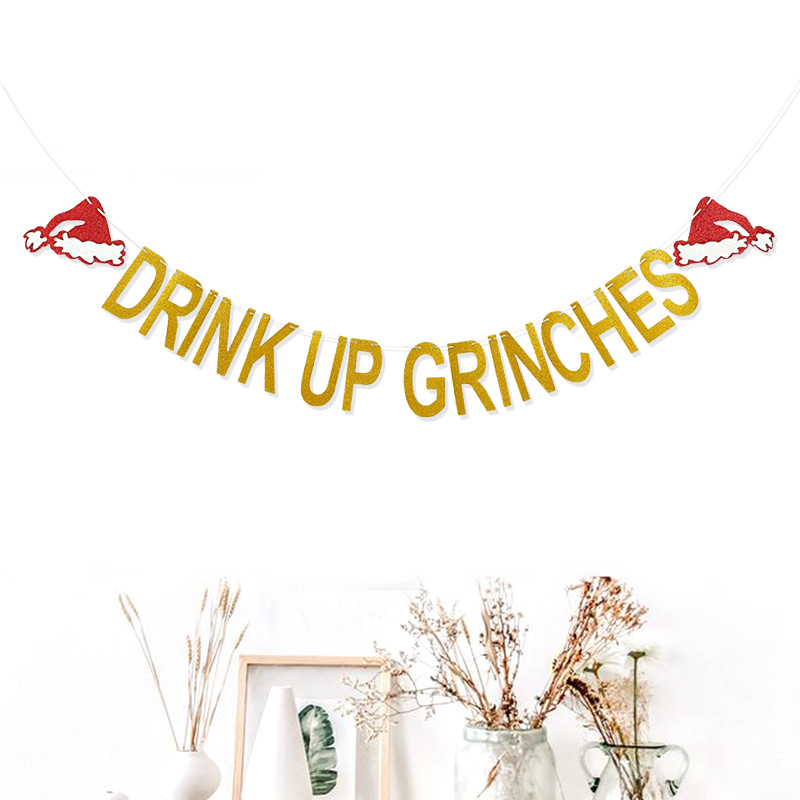 Navidad fiesta decoración cadena bandera Navidad sombrero brillo tire flor beber grinches carta tire bandera