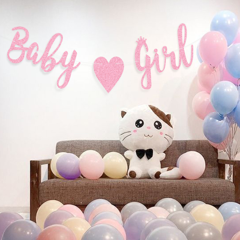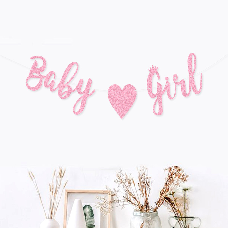 Baby shower party Decoration string flag fábrica Bienvenido Baby Decoration baby girl Glitter letter Garland