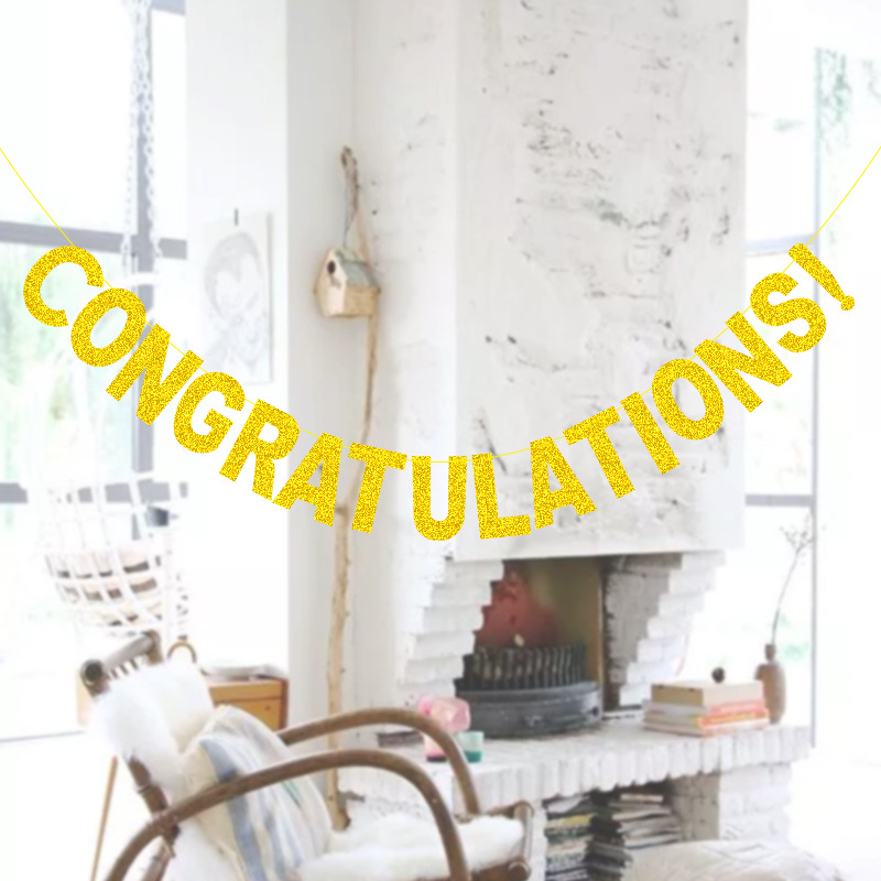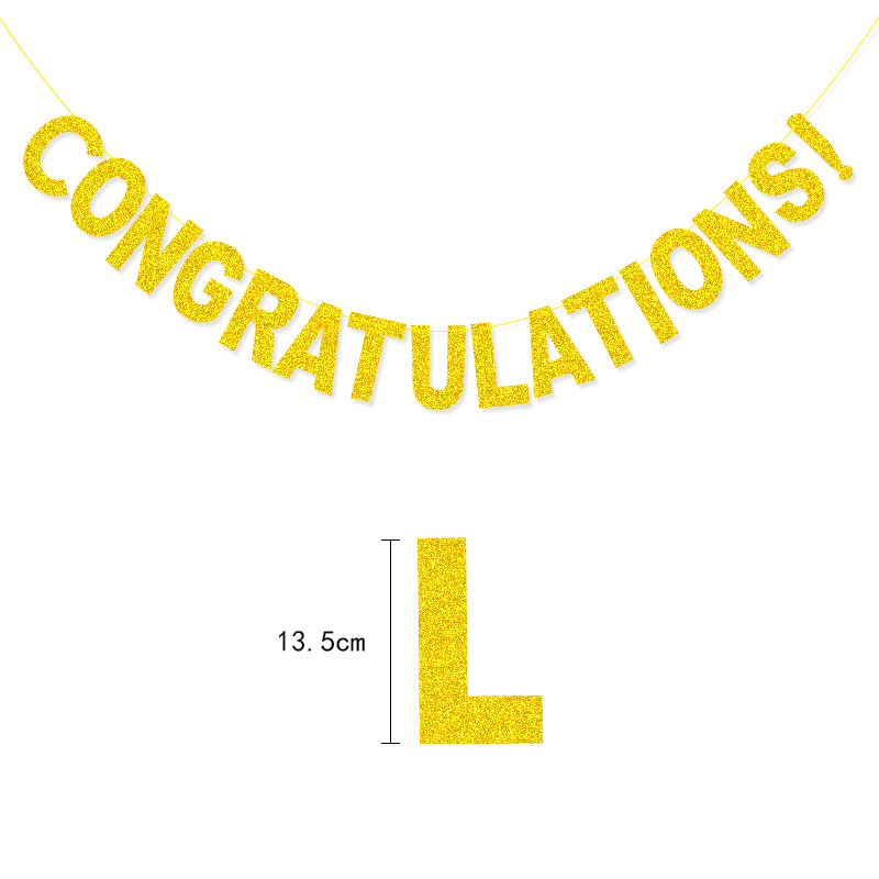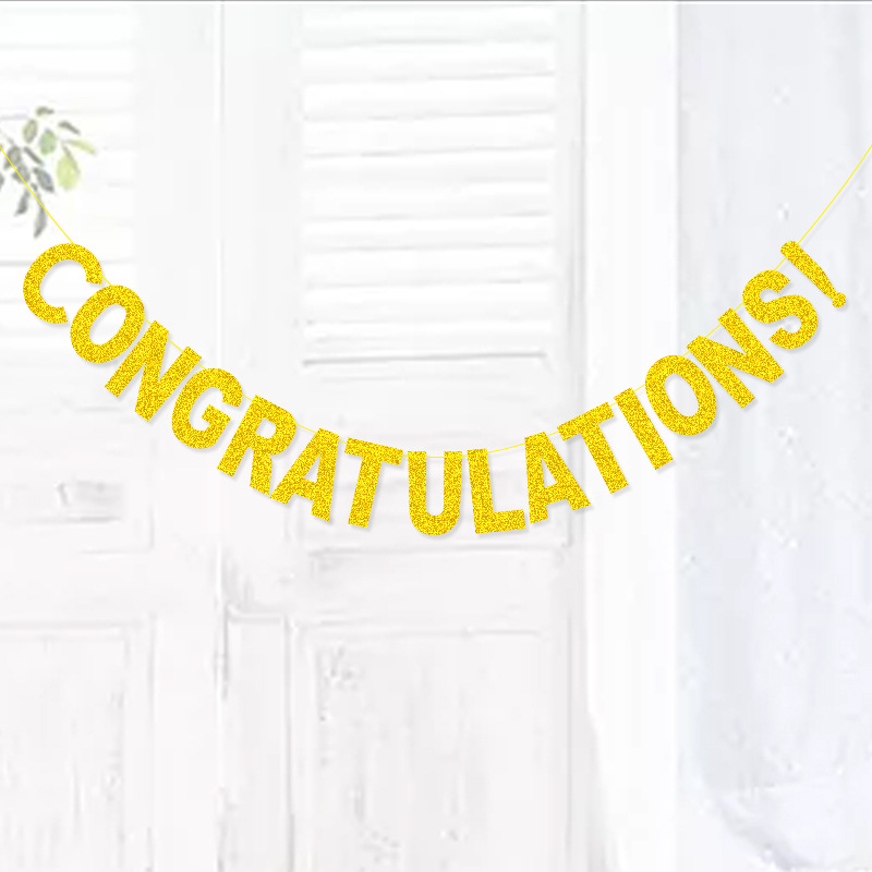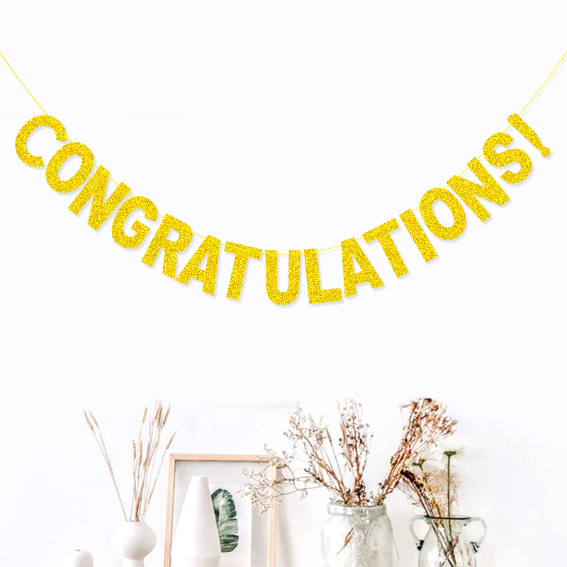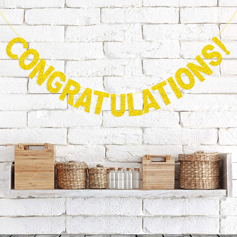 Banderas de cadena decorativas fiesta de graduación Suministro directo de fábrica ¡FELICITACIONES! Oro Glitter Garland