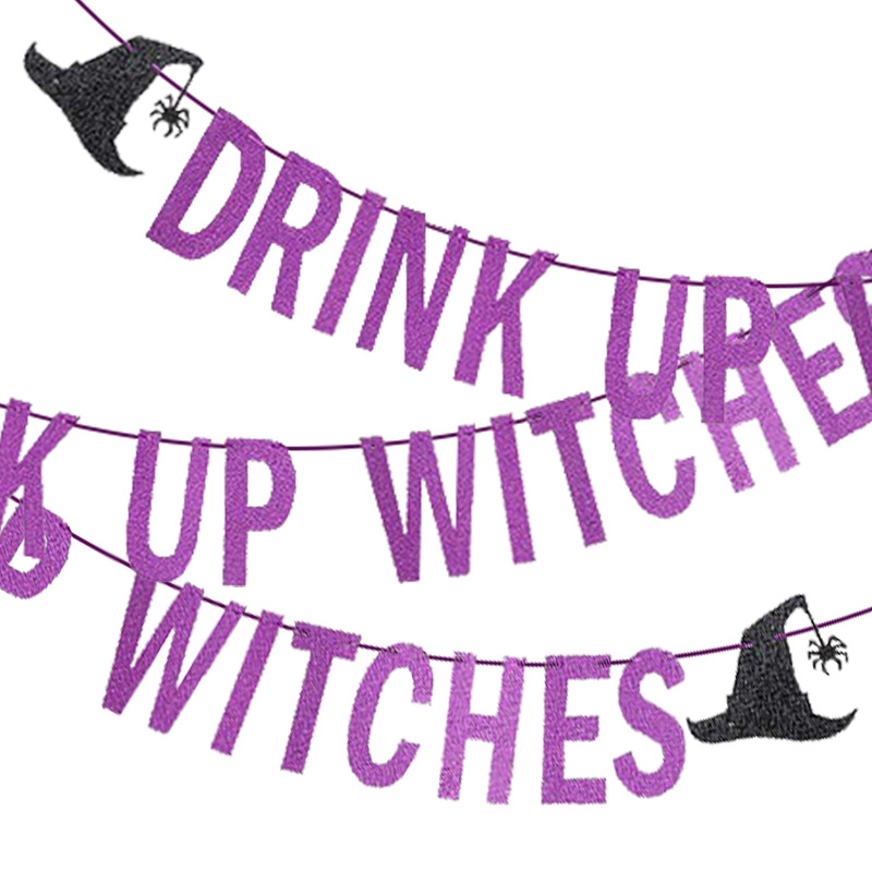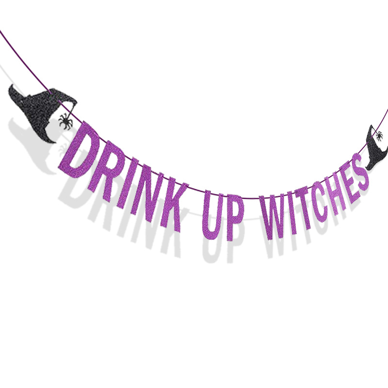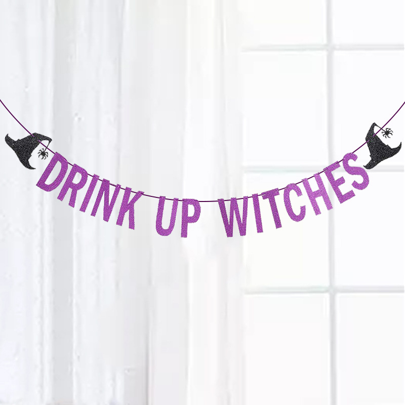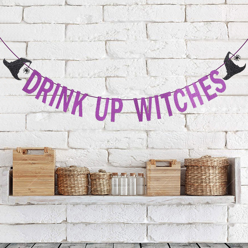 Sombrero decoración cadena bandera brillo letras tire flor beber brujas tire bandera fiesta de Halloween
