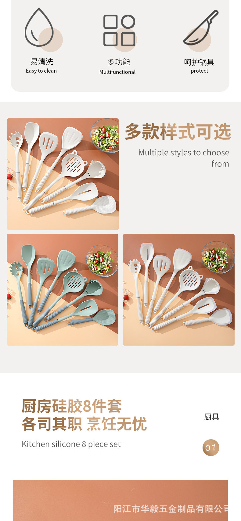 Espátula de silicona de estilo nórdico creativo, mango de silicona, pala antiadherente, colador de cocina de grado alimenticio, juego de utensilios de cocina