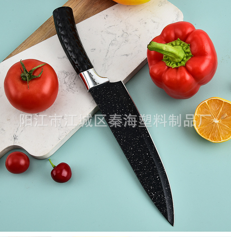 Cuchillo de mango de diamante de acero inoxidable 6 piezas cuchillo negro cuchillo de fruta cuchillo de cocina cuchillo de cocina cuchillo de cocina caja de regalo