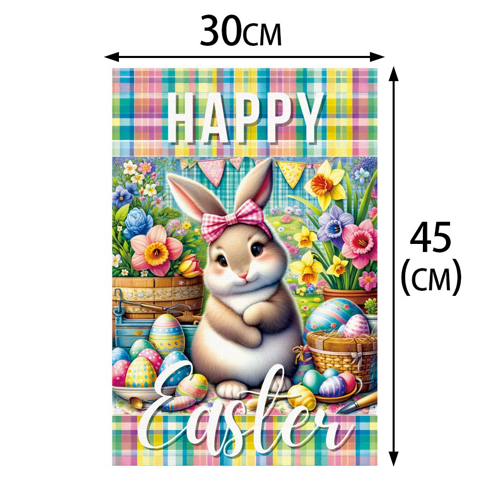 Pascua transfronteriza patio decoración bandera de jardín conejo colorido lino doble cara bandera de jardín del día del conejo