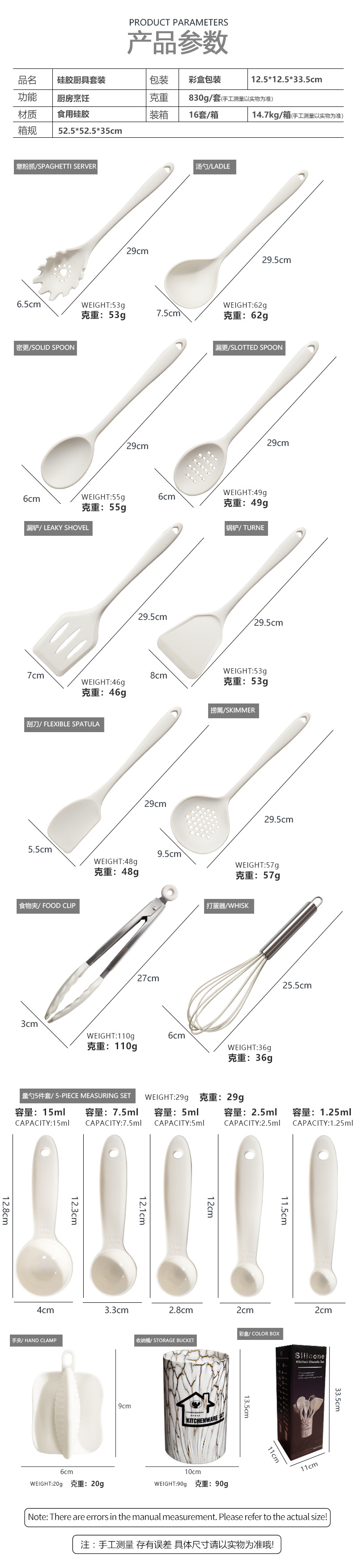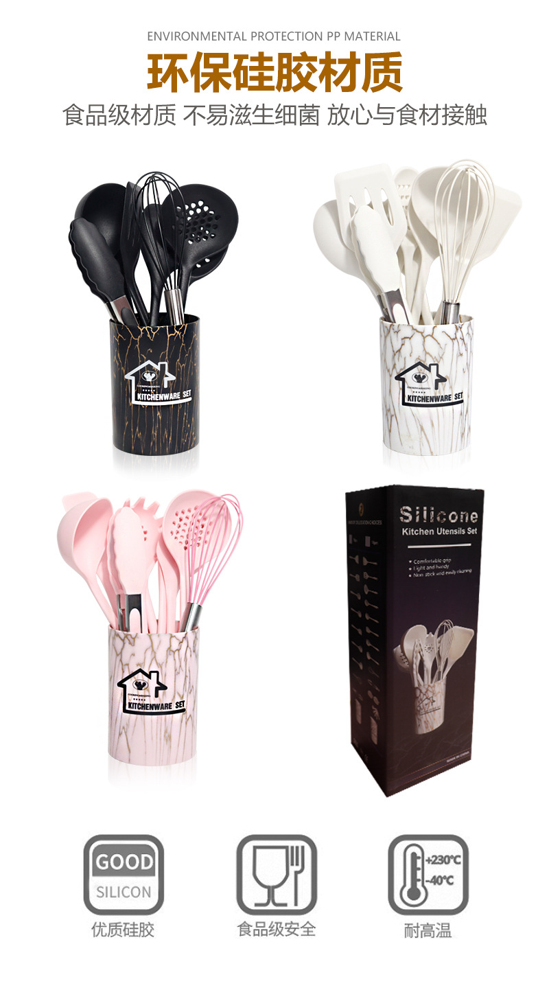 Juego de 18 piezas de cuchara de sopa de espátula de silicona de grado alimenticio