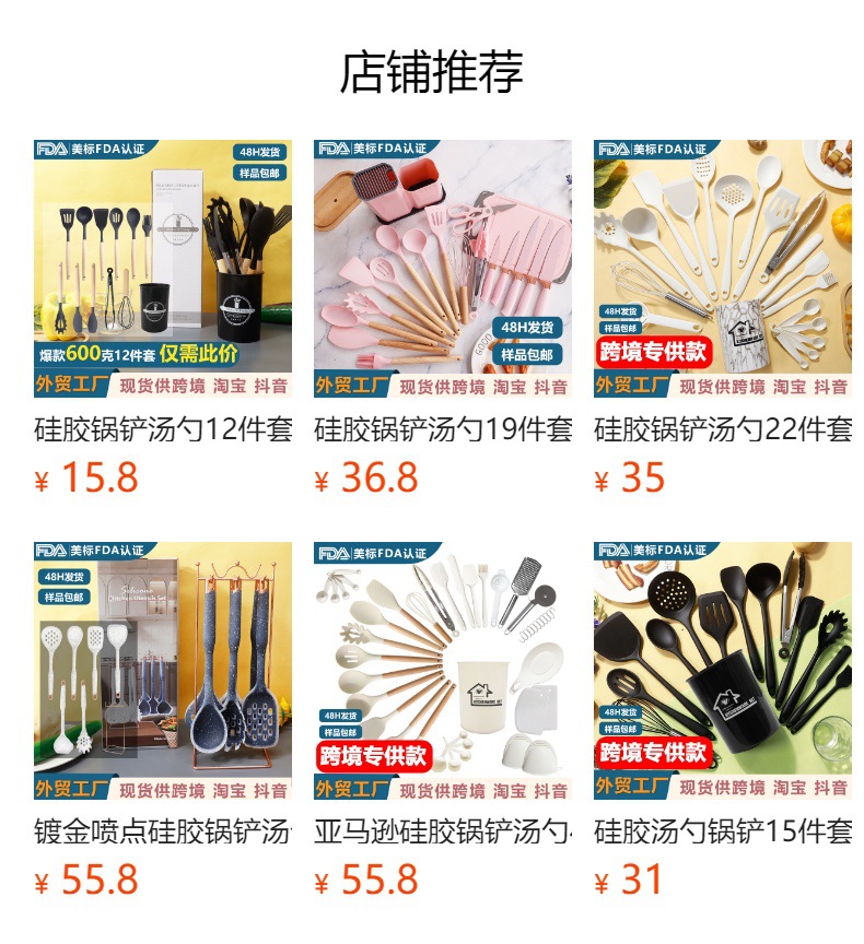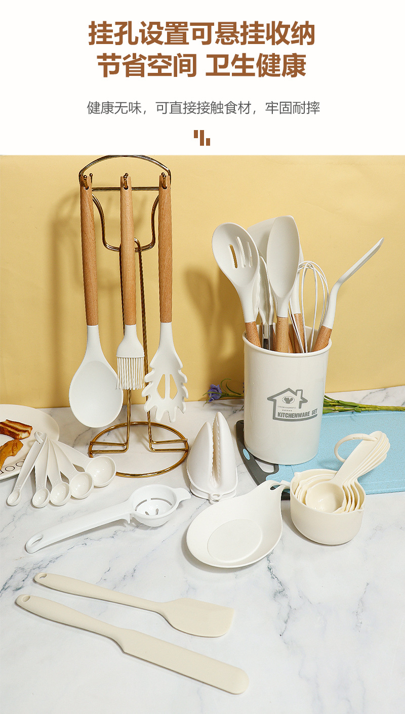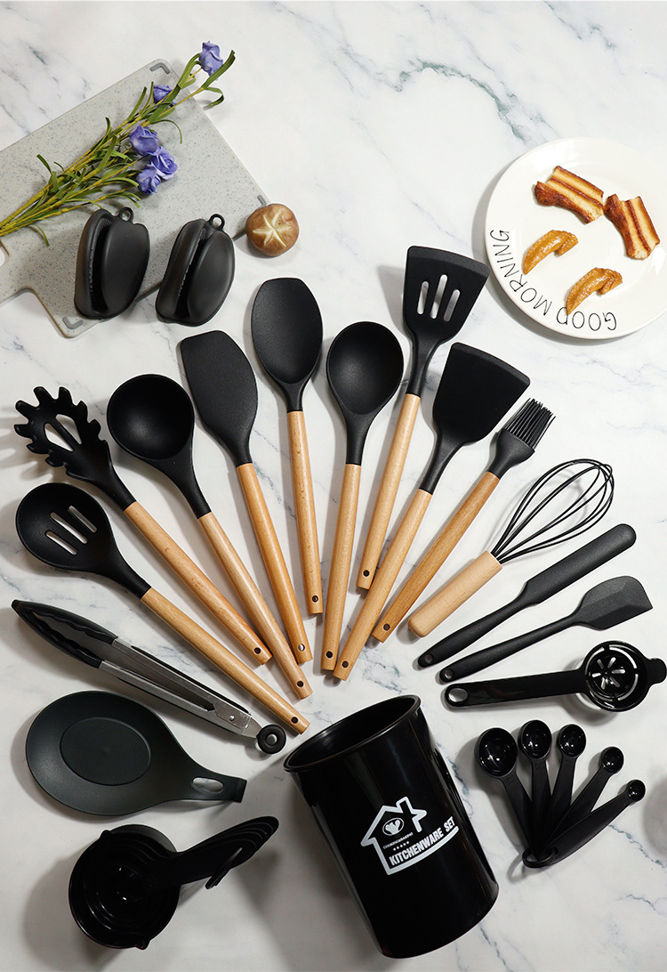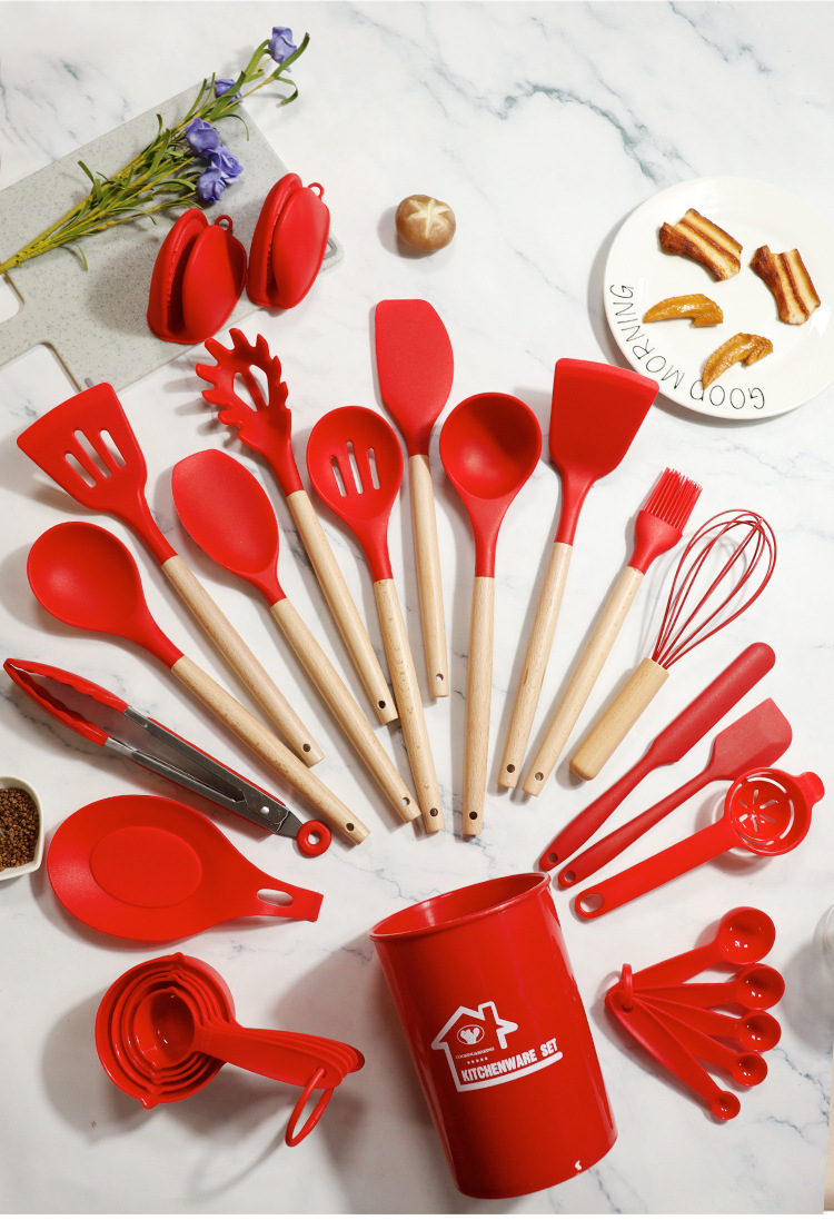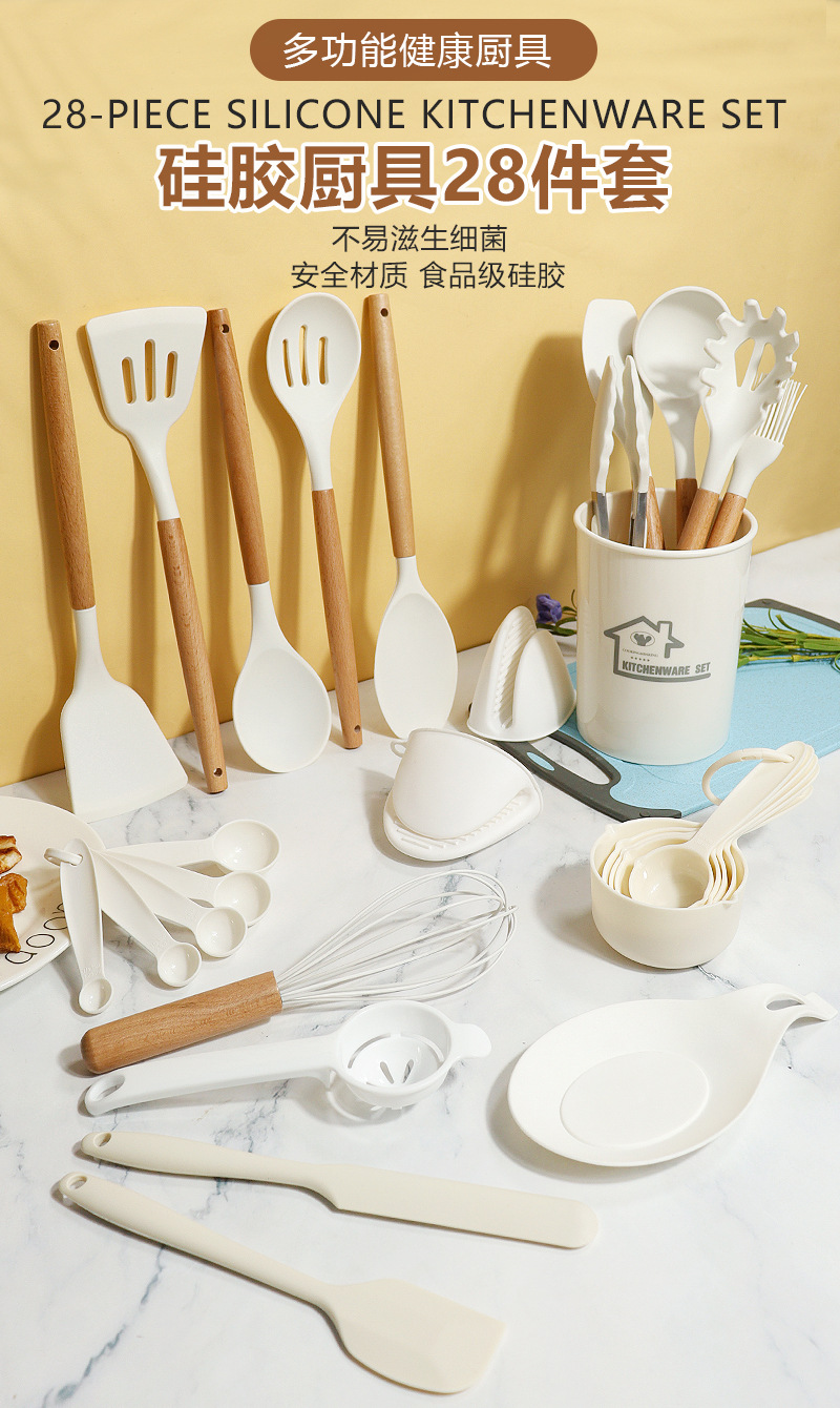 Juego de 28 piezas de cuchara de sopa de espátula de silicona de Amazon Juego de utensilios de cocina de silicona resistente a altas temperaturas de sartén antiadherente