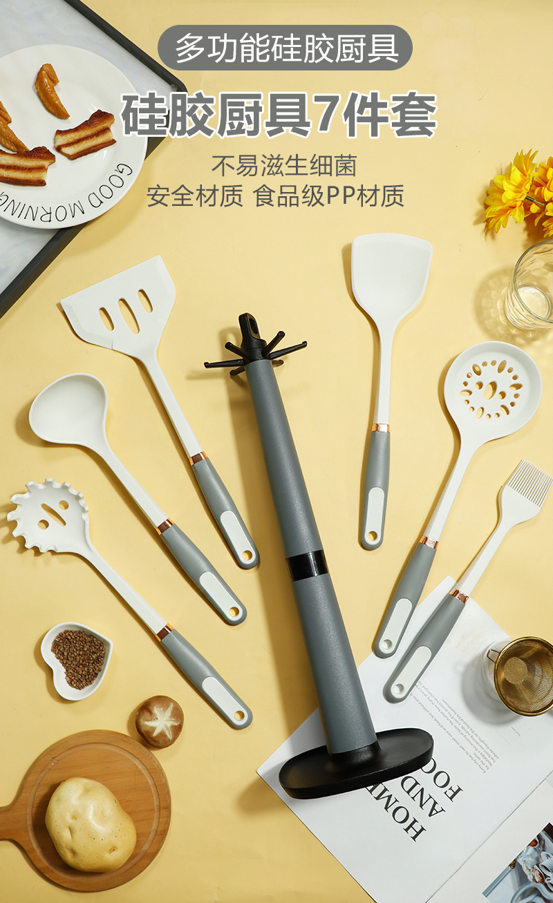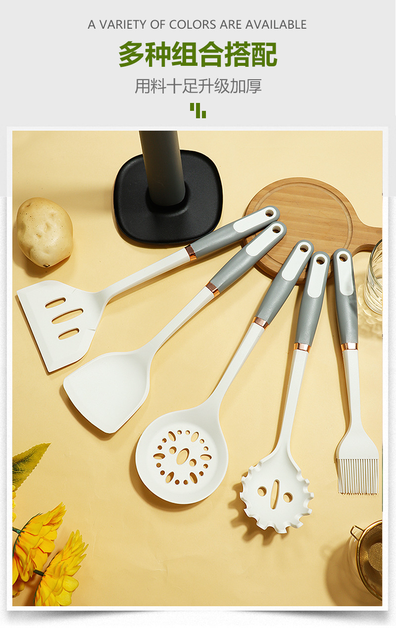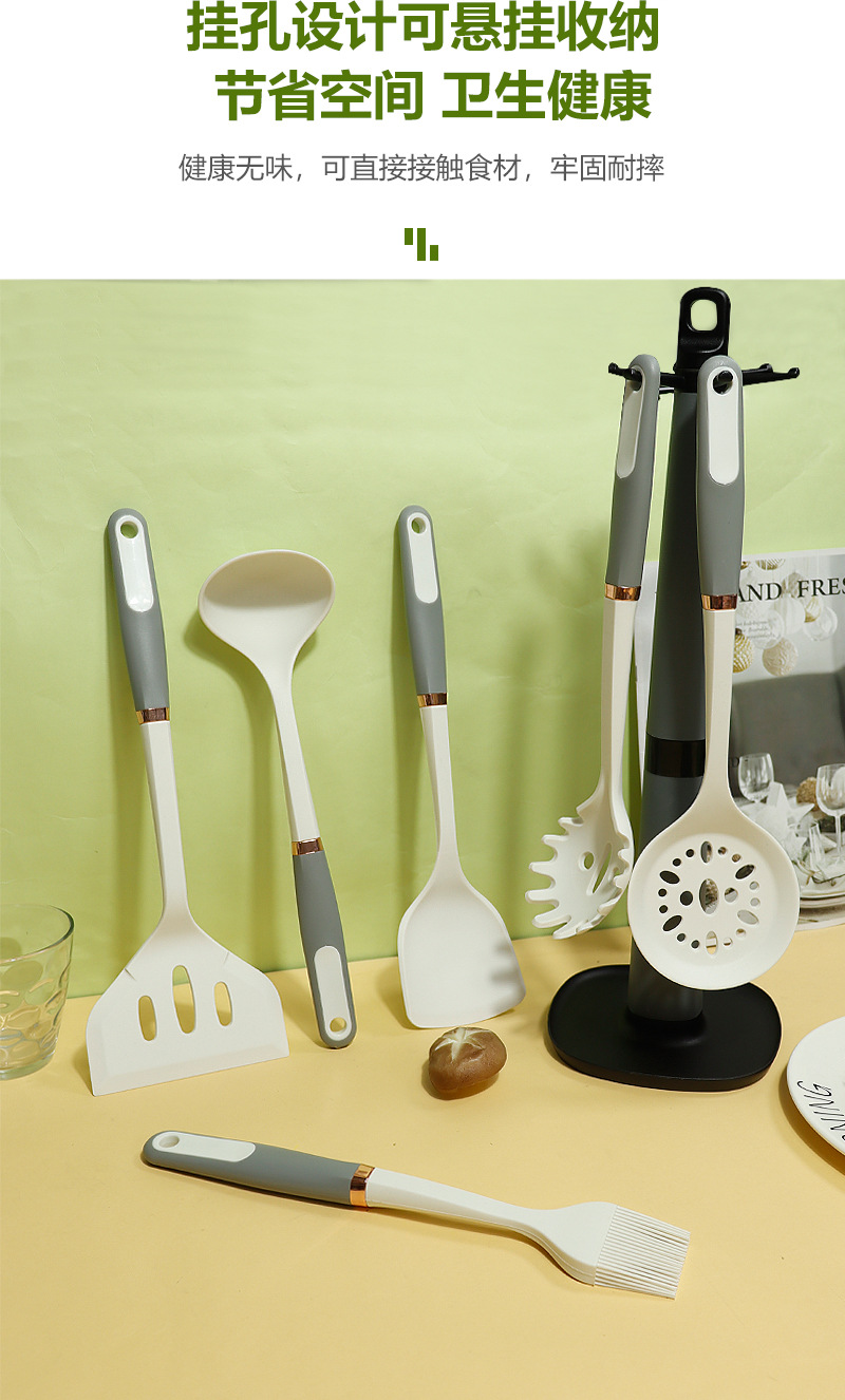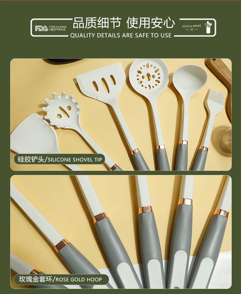 Mango de anillo de oro de silicona no pegajoso de silicona de grado alimenticio utensilios de cocina de silicona en stock