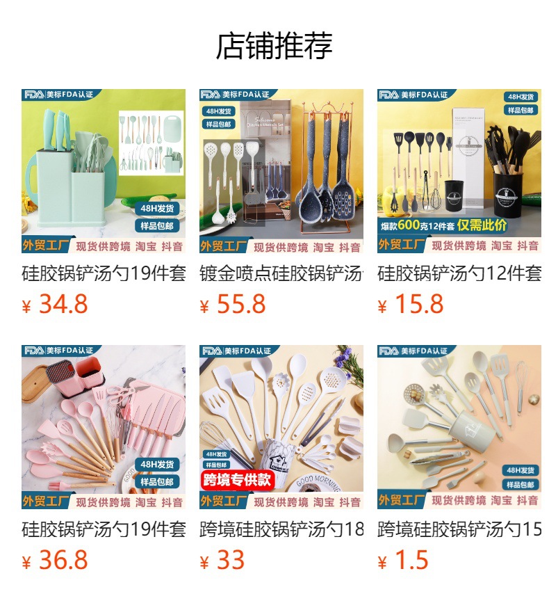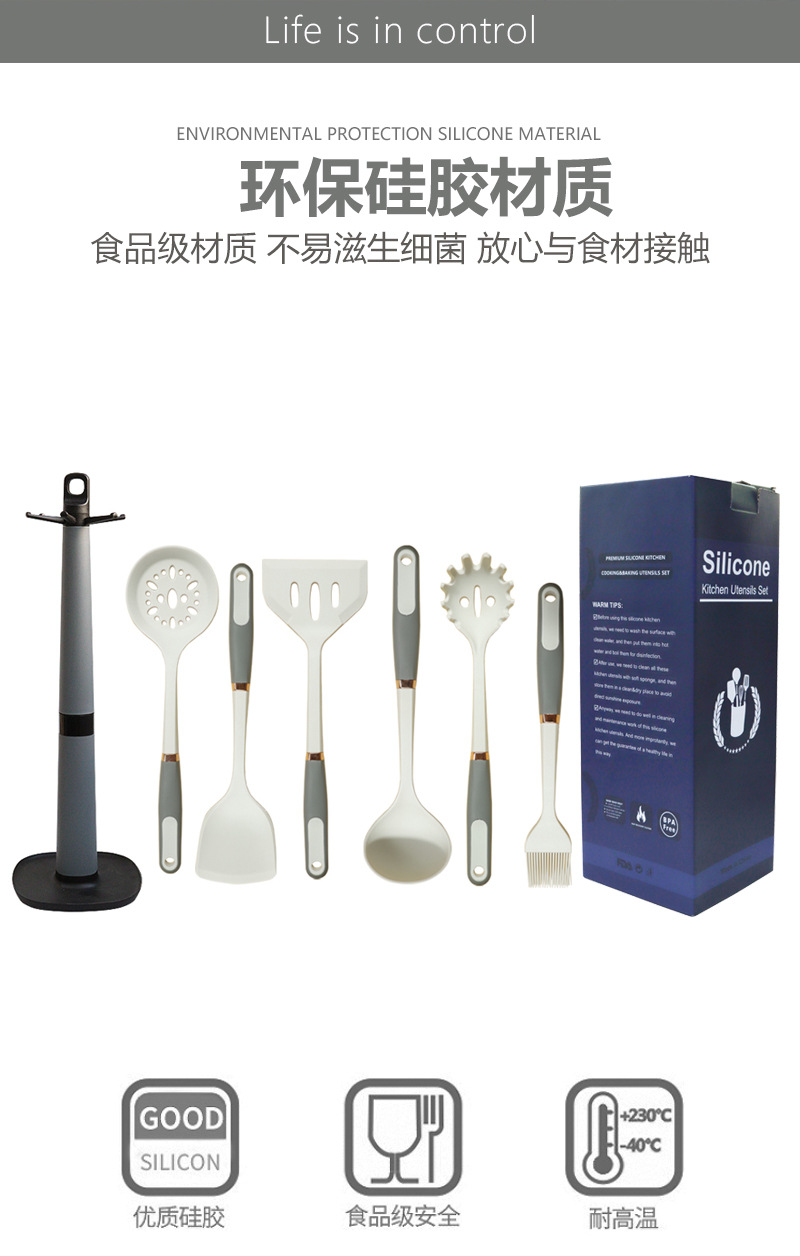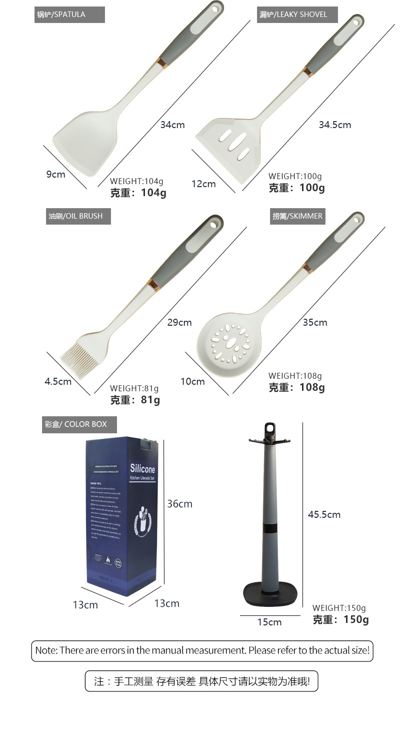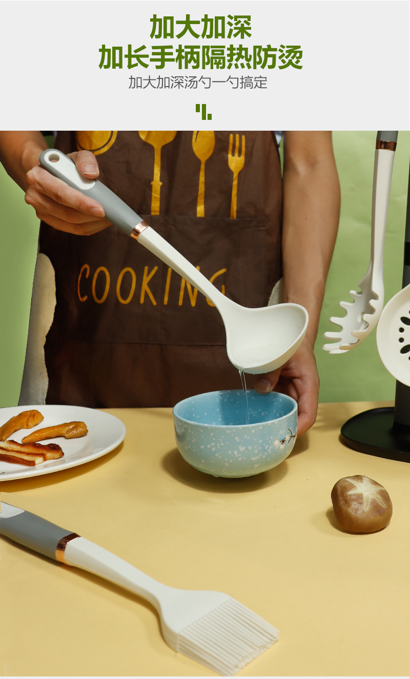 Mango de anillo de oro de silicona no pegajoso de silicona de grado alimenticio utensilios de cocina de silicona en stock