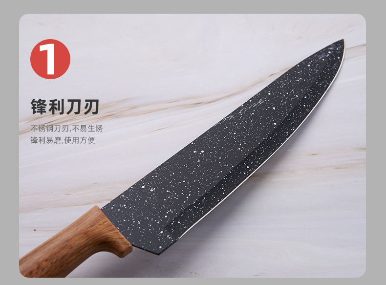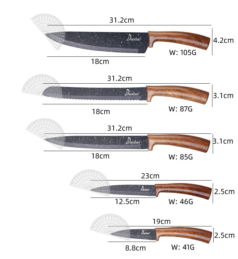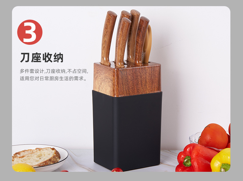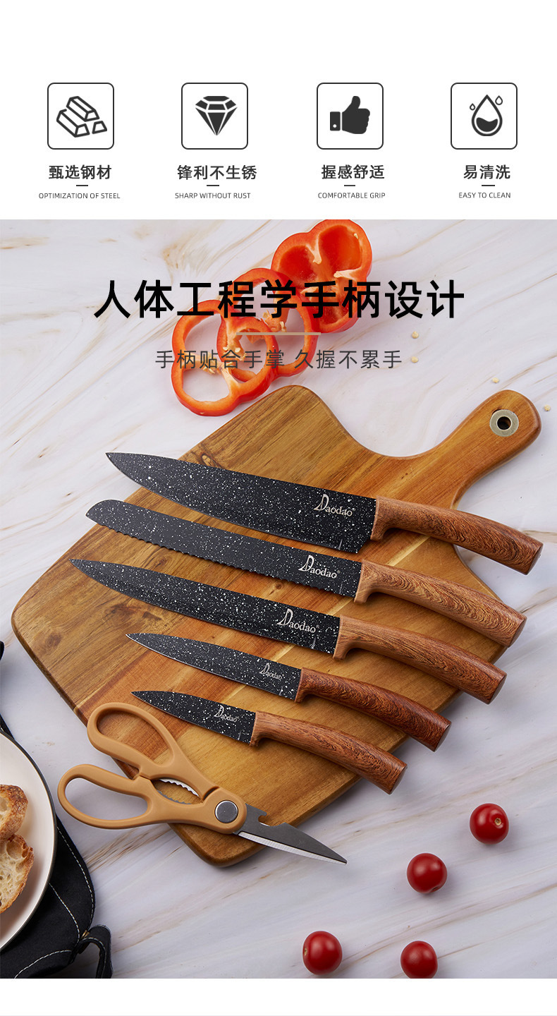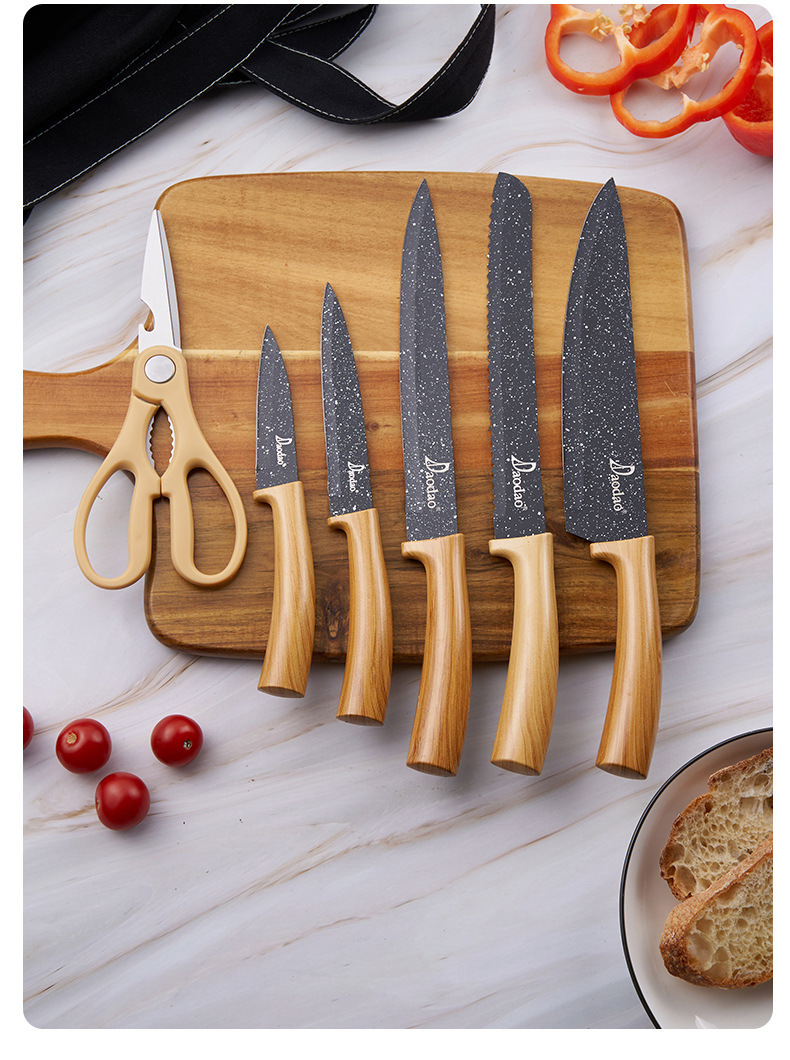 Comercio exterior europeo y americano en stock Yangjiang traje de cuchillo mango de grano de madera 6 piezas cuchillo de cocina conjunto cuchillo con soporte de cuchillo
