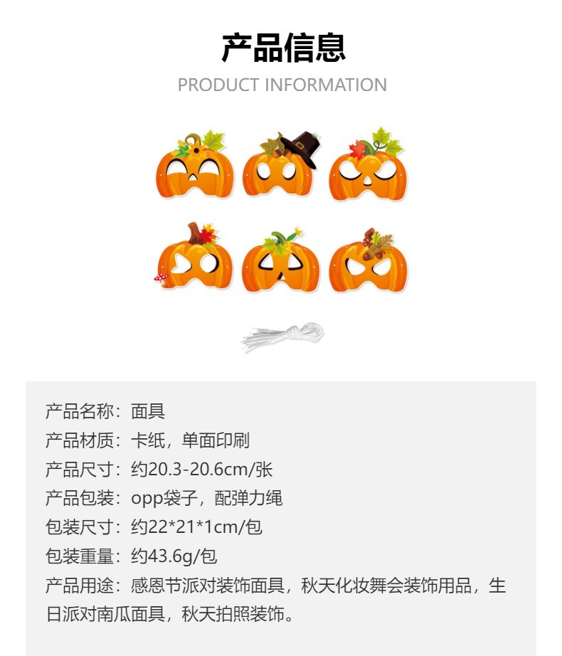 Nuevas máscaras de decoración de fiesta de Acción de Gracias transfronterizas, decoraciones de fiesta de cumpleaños de otoño, máscaras de calabaza, accesorios fotográficos
