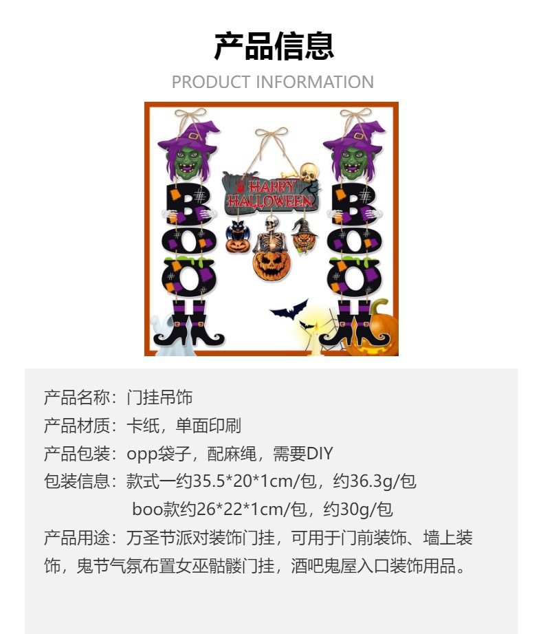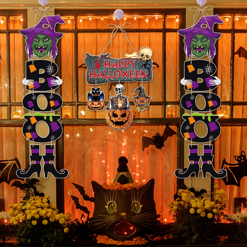 Nuevo estilo transfronterizo decoración de fiesta de Halloween colgante de puerta colgante decoración de puerta de Halloween colgante de puerta de bruja de calabaza boo